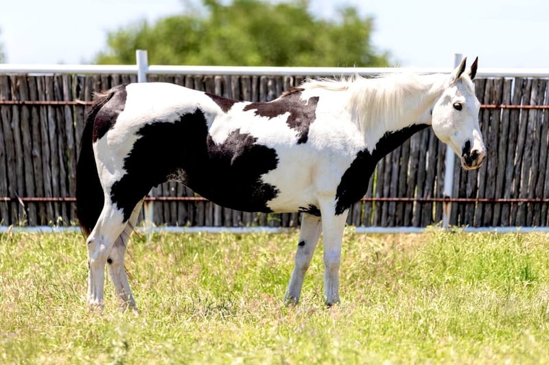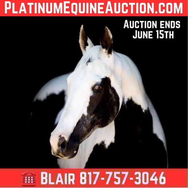 ONLINE AUCTION Place your bids at www.PlatinumEquineAuction.com Starting Bid $3500 Auction ends June 15th, 2025 Need a new saddle? Check out White Rock Saddles on our website or Facebook! Destiny is a 14.3H, 15 yr old black and white paint mare. She is extremely sweet and wants to be everyone’s friend. She has spent her life as a trail horse for a handful of novice riders and she has had a couple foals. Destiny is every trail riders dream. She is GORGEOUS, kind and gentle! She rides well, neck reins and goes the speed you ask of her! She isn’t watchy and never tries to do any silly tricks! She would be a great addition to anyone’s heard that want just pleasure / trail ride and have an easy one! She’s simple to get along with and easy to operate! She’s been ridden bareback in just a halter tons and would really excel as a family horse for anyone to jump on and enjoy! She is extremely uniquely colored and sure to get attention everywhere you take her! She has thrown her color in her foals as well! Destiny loads, leads, bathes and ties great and is your simple, easy going trail horse! She’d fit a lesson barn or therapy center well too! She’s not marish in the slightest and is very gentle natured. Don’t miss your chance to own a super unique, gentle, SWEET family horse! Go to her website page northtexashorsecompany.com/destiny for more pictures and footage! Please call Blair with North Texas Horse Company for more info at 817-757-3046. We are located in Weatherford, TX and can help arrange affordable shipping to anyone!! ONLINE AUCTION Place your bids at www.PlatinumEquineAuction.com Starting Bid $3500 Auction ends June 15th, 2025 Need a new saddle? Check out White Rock Saddles on our website or Facebook!