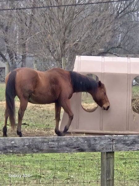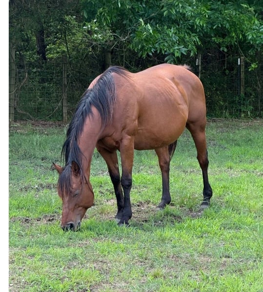 American Quarter Horse mare, born in 2016, with a stunning bay coat. This well-built mare has been a broodmare only all her life. I got her last year as an in foal mare. When I had her vet checked she was open. I did not plan on having anymore foals after this year due to my age and health so that is why she is for sale now. I have had correspondence with a previous owner and they bought her at a dispersal sale in Texas - she had a foal on her side and he raised one other colt with her and they sold her in foal. She had a foal in March of 2025 and then she was bred back and sold, thats when I got her. She has been on a regular hoof trimming schedule at every 6 wks since I have had her. She loads and hauls great. She is a In your pocket mare. She UTD on vaccinations and wormings - I will get a new coggins and health papers when she sells. In the hot weather she is a little heevy but I have discussed this with my vet and he plans to put her on a type of medicine for this and she should be good. Through this winter she has had no problems at all. Price is negotiable - I can meet buyer within a reasonable distance.