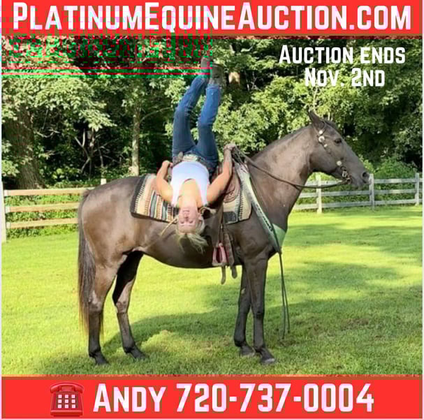 ONLINE AUCTION Place your bids at www.PlatinumEquineAuction.com Starting Bid $3500 Auction ends November 2nd, 2025 Need a new saddle? Check out White Rock Saddles on our website or Facebook Introducing Coco a beautiful 17 year-old, 14 14 hand quarter horse Mare. Coco’s personality, is as sweet as it is captivating. From the moment you meet her, Coco’s kind nature will melt your heart, and her steady demeanor will put you at ease. Whether you are an experienced rider or just starting out, Coco will take care of you with the calmness and confidence only an experienced and well-rounded horse can provide. Coco is a true all-around mare, versatile enough to shine in any setting. With years of experience under her belt, Coco has proven herself, repeatedly on countless trail rides, navigating creeks, crossing state roads, and handling various obstacles such as bridges, steep hills, and wildlife with ease. Her traffic-safe attitude makes her a great companion whether you are on busy roads or quiet trail rides. Coco’s training is extensive, she just spent time in Connecticut, at a kids camp. Pics are with her trainer at camp. She responds to cues with precision, whether through neck rein or direct rein, making her responsive and easy to handle for riders of all levels. Her gaits are smooth, offering a comfortable ride whether you are walking, trotting, or cantering. She has been desensitized to tarps, pool noodles, flags, umbrellas, and even a blowing advertisement, showing just how dependable and steady she is in any environment. You will never have to worry about her reaction, even in unfamiliar surroundings. Coco’s willingness to please extends to her work ethic—she will lead or follow on the trail without hesitation and never fusses when asked to do something new. Her easy-going attitude makes her a joy to ride in groups or alone. Loading and unloading her is a breeze, making trailering to unfamiliar places a hassle-free experience. If you are searching for a trustworthy, well-trained, and versatile horse with a heart of gold, look no further than Coco. Her kind eyes, calm demeanor, beautiful color and smooth gaits make her the perfect partner for riders of all experience levels. Don’t let her age, fool you, she has a lot of miles left. Coco is the type of horse that will not only take care of her rider, but will also leave an impression with her sweet personality, dependability, and willingness to please. Wherever your journey takes you, Coco will be right by your side, ready to tackle every trail, road, and adventure. For more info contact Andy McClaflin 720-737-0004 Located in Arvada, CO. ONLINE AUCTION Place your bids at www.PlatinumEquineAuction.com Starting Bid $3500 Auction ends November 2nd, 2025 Need a new saddle? Check out White Rock Saddles on our website or Facebook