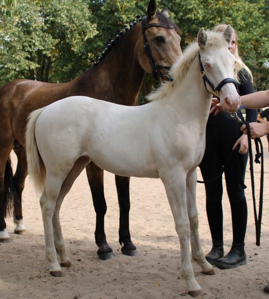 Beautiful smokey cream dun yearling D-Pony mare. Due to the cancellation of a mare purchased on commission, she is now available. Ella is a lovely, sturdy Quarter Pony registered with the Breed Association for Pintos and Special Breeds in Germany. Her color is smokey cream dun, homozygous for black and cream (see color variation). Expected final height around 147 cm. Ella will be vaccinated in February along with all other horses. In previous sales, she has been vaccinated before leaving for her new home. She has been inspected and approved by the studbook with a grade of 8, is up-to-date with farrier and deworming. She has a pedigree and horse passport, as well as full color test results. She is accustomed to transport, farrier, veterinarian, and handling. She does not kick or bite. Slightly shy at first, but no fear or nervous behavior. Not in a herd and not overly social in handling. She lives outside 24/7 in a small group of peers and is the lowest in rank. Transport to the new owner within 200 km is included in the purchase price. Longer distances can be arranged for a reasonable contribution to costs. Serious and neat inquiries will receive a professional, courteous response. Please preferably contact via WhatsApp at +31 6 10271771. EN-DE-NL Anonymous, random questions here will not be answered. Your first name and phone number are appreciated.