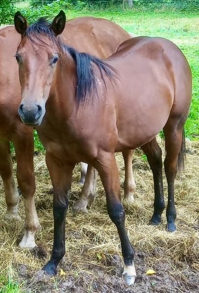 **Annonce de vente : jument American Quarter Horse** À vendre, une prometteuse jument American Quarter Horse, née en 2024. Cette talentueuse bai se distingue par ses excellentes qualités et son potentiel prometteur, elle a été récompensée par la prime 1a lors de l'exposition de reproduction hövler de la DQHA. **Caractéristiques :** - Race : American Quarter Horse - Sexe : Jument - Année de naissance : 2024 - Couleur : Bai - Discipline : reining, cutting, cowhorse,… Lotti se distingue par son caractère équilibré et sa grande volonté d'apprendre. Elle est idéale pour la reproduction, les loisirs, mais peut également être utilisée pour le sport. Elle vit en troupeau avec des congénères de différentes races et connaît les bases du poulain. Pour toute question ou pour plus d'informations, je suis à votre disposition. Les visites sont possibles sur rendez-vous. Nous attendons votre demande avec impatience !