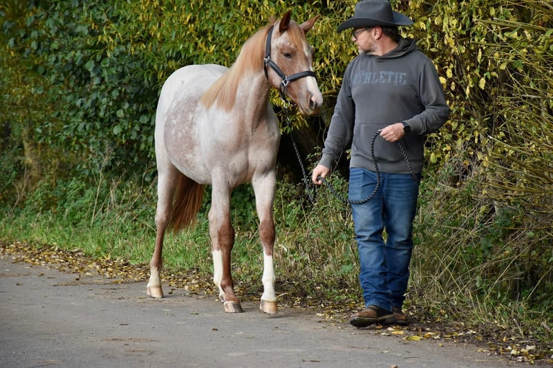 Mega hübsche Stute in der Traumfarbe Red-Roan ! Bestes Cutting/Cowhorseblut. Ihr Vater Redwhiteandblue Boon wurde Cutting Futurity-Champion 3 und 4jährig. Er stammt ab von Peptoboonsmal aus einer Gray Starlight Tochter. Ihre Mutter ist eine Tochter von Smart Dually x Genuine Doc - also auch fliesst bestes altes Performanceblut durch ihre Adern. Diese Jährlingsstute ist wahnsinnig athletisch, dabei aber brav und unerschrocken. Sie erhielt auf der DQHA Fohlenschau die 1A Prämie. Aufgrund ihrer Abstammung und ihres tollen Gebäudes später auch für die Zucht interessant. 4 Panel N/N GBED/N Anschauen lohnt sich in jedem Fall !