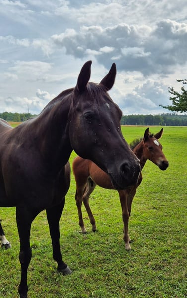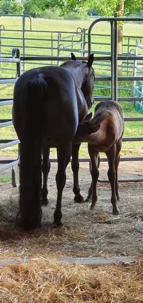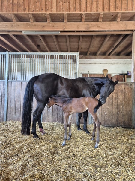 Schweren Herzens verkaufe ich meine Quarterhorse Stute "Sou" Sie ist im Mai 2006 geboren. Ich züchte nicht mehr, aus diesem Grund wird sie als reine Zuchtstute verkauft. Sou hat bisher ingesammt 7 Fohlen geboren. Davon 2 bei mir. Ihre Geburten verliefen problemlos. Bei mir wurde sie im Natursprung bedeckt wo Sie ohne Probleme aufgenommen hat. Sie ist eine tolle Mutter und hat volles Papier von der AQHA. 5 Panel- Test und IMM/MYHM n/n. Equidenpass liegt natürlich vor. Eingetragen im Basis-Zuchtbuch bei der DQHA. Sou hat einen Foundation Blutanteil von 86%. Regelmäßig entwurmt und Tetanus/Tollwut Impfung. Zahnkontrolle. Sie ist eher Ranghoch. Steht in einer Stutenherde im Offenstall. Kennt aber auch Boxenhaltung. Aktuell hat sie noch ein Fohlen bei Fuß. (geboren 07/2025). Sie wird als reine Zuchstute verkauft! Läuft barhuf, ist ca. 1,50 cm groß.