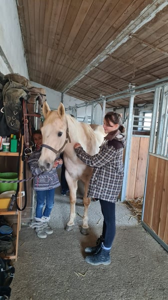 Devo vendere/dare via per motivi di salute la mia amata cavalla Quarter Horse di 20 anni. È ancora in forma, ha un piccolo "problema" di cui bisogna tenere conto nella zampa anteriore destra, che ha avuto sin da puledra poiché ha un piede a bockhuf. Con la giusta ferratura, può ancora essere montata moderatamente per il tempo libero, va bene da sola nel bosco e ha un carattere molto dolce, ma non è un cavallo per principianti. Tuttavia, dovrebbe esserci un posto dove possa rimanere e invecchiare anche se non sarà più montabile. La cedo solo con un contratto di protezione e un periodo di prova.