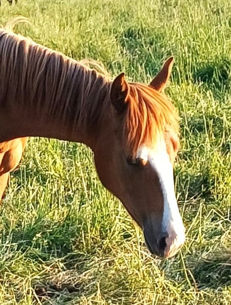 UG Codys Sweet Deal - eine hübsche, korrekt gebaute Quarter Horse Stute in der klassischen Farbe sorrel, geboren am 25.Juli 2024. Mit einem geschätzten Endmaß von ca. 150 bis 152 cm bringt sie eine kompakte, stabile Statur und sehr harmonische Proportionen mit - beste Voraussetzungen für Sport und Freizeit. Sie wächst artgerecht mit Gleichaltrigen auf, wird regelmäßig gehändelt und darf in ruhiger, pferdegerechter Umgebung groß werden. Gesundheitlich ist sie bestens versorgt: regelmäßig entwurmt, altersgemäß geimpft und genetisch über die Eltern 5-Panel n/n. Im Umgang zeigt Cody sich freundlich, menschenbezogen und neugierig, dabei zunächst etwas vorsichtig, aber stets aufmerksam und lernwillig. Sie ist unkompliziert, brav, kennt das Fohlen-1x1 und ist halfterführig. Ihre zugängliche, kooperative Art macht sie zu einem Jungpferd mit viel Entwicklungspotenzial. Dank ihrer hochwertigen Reining- und Allroundabstammung bietet UG Codys Sweet Deal eine solide Basis für eine spätere Karriere im Turniersport - ebenso eignet sie sich für vielseitige Aufgaben im Freizeitbereich. Ein Nachwuchspferd mit feinem Charakter, klaren Anlagen und einem vielversprechenden Fundament für die Zukunft.