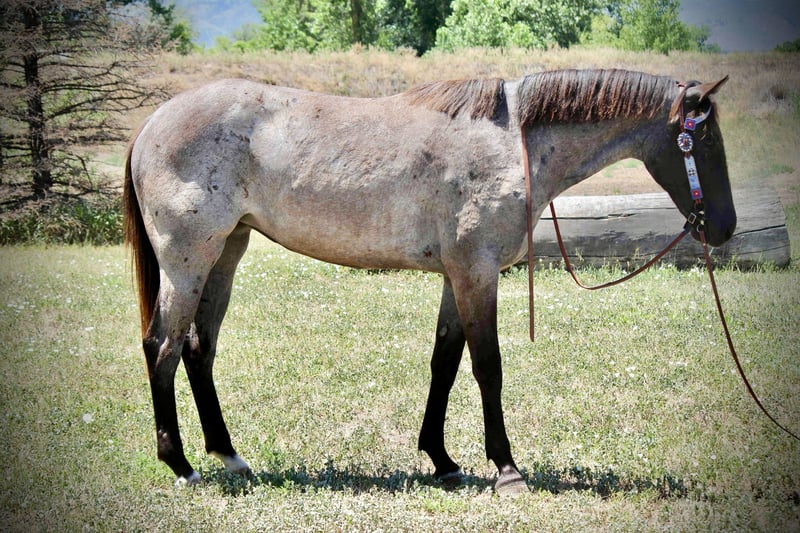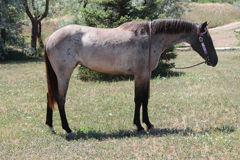 "AVAILABLE ON ONLINE HORSE AUCTION AT www DOT MagicHorseAuction DOT com BIDDING OPEN NOW thru TUESDAY | JULY 22nd - BUY IT NOW AVAILABLE! *Final price will be determined on auction site* CONSIGNOR CONTACT INFO: Dynamite Horses 970-632-3644 LOCATION: Fort Collins, CO ★★ LTD BEAN BOOZLED ★★ “Silver” | Versatile Young Mare | Western Pleasure • Trail • English • Drill Team Prospect. Meet Silver — a one-of-a-kind young mare with the mind, build, and foundation to go absolutely any direction. Started right and handled with care, Silver has been one of the easiest and most willing horses we’ve ever had the pleasure of bringing along. From day one, Silver showed a natural ability to learn and a desire to please. She has picked up everything asked of her with ease and curiosity, making every ride a joy. She has a solid Western pleasure foundation, a confident start in English tack, and has also begun work toward becoming a drill team prospect — proving herself versatile, brave, and reliable. Silver has seen just about everything. She’s carried a flag, walked over and dragged tarps, crossed bridges and water, and even ridden through tunnels. She’s handled trips into town with complete composure, riding alongside bikes, strollers, traffic, and loud music without missing a beat. Crowds, chaos, and new environments don’t shake her — she takes everything in stride. She’s also been ridden out in the mountains, where she’s shown herself to be surefooted, steady, and confident on rough terrain and around wildlife. Whether it’s backcountry trails or busy streets, Silver is a reliable, level-headed ride you can trust. Her foundation is outstanding, and she’s shaping up to be one of the safest, most dependable young mounts out there. Whether you’re looking for a future all-around show horse, a trusted trail companion, or a flashy drill team performer, Silver has the mind and movement to shine. On top of all that, Silver is absolutely stunning. She’s built like a brick house, with the kind of presence and structure that makes people stop and stare — all while remaining gentle, affectionate, and easy to handle. This sweet mare has all the right pieces: brains, beauty, and a rock-solid beginning. Watch her video and come meet her in person — you won’t want to leave without her.