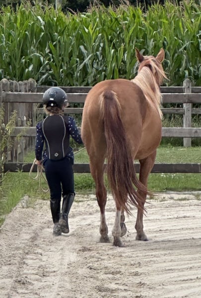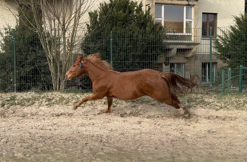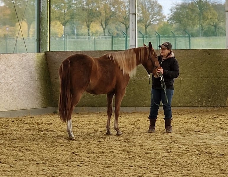 Sie wächst artgerecht in der Herde auf und wird regelmäßig vom Boden gearbeitet. Dabei zeigt sie sich sehr menschenbezogen, lernwillig und absolut unkompliziert im Umgang.