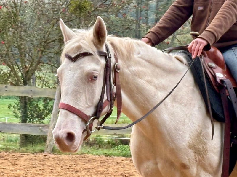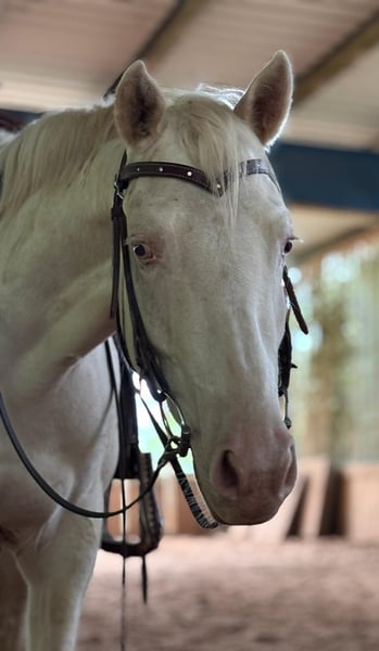 TJ Twisten Sassy - eine bildschöne Quarter Horse Stute mit seltener Cremello-Farbe, geboren am 21.06.2022. Sie bringt nicht nur ein attraktives Erscheinungsbild mit, sondern überzeugt auch durch ein korrektes Gebäude, ein gutes Fundament und eine erstklassige Reining-Abstammung, die sie zu einem echten Top Prospect für den Sport macht. Mit einem zu erwartenden Endmaß von ca. 150-152 cm wächst sie im Herdenverband auf und kennt 24-Stunden-Weidehaltung. Sie wurde mit viel Ruhe und Sorgfalt aufgezogen, durfte in ihrem Tempo reifen und zeigt sich heute als gesunde, robuste Jungstute. Über ihre Eltern ist sie 5-Panel n/n, regelmäßig geimpft und entwurmt und zeigt sich beim Tierarzt und Hufschmied brav und unkompliziert. Sassy hat einen freundlichen, menschenbezogenen Charakter. Sie ist umgänglich, aufmerksam, anständig, manchmal auch mit einem kleinen Schuss jugendlicher Frechheit - was sie umso liebenswerter macht. Ihre gute Erziehung und das solide Umfeld spiegeln sich in ihrem Verhalten deutlich wider. Seit Kurzem befindet sie sich im Beritt und ist bereits angeritten. Dabei zeigt sie Talent, Rittigkeit und schöne Bewegungen - eine hervorragende Grundlage für Reining, Ranch Riding oder andere Western-Disziplinen. Sie ist ein ganz braves junges Pferd, welches sich hervorragend unterm Reiter entwickelt hat. TJ Twisten Sassy vereint Ausstrahlung, Qualität und Perspektive - ideal für alle, die ein besonderes Nachwuchspferd mit Sportpotenzial und Charakter suchen.
