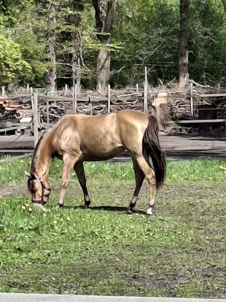 Volles aqha Papier und dqha pass. Zur Zeit 155cm. Sehr Menschenbezogen und anhänglich, kennt sattel aber noch nicht geritten. Bereit für die weitere Ausbildung. Geimpft, entwurmt und regelmäßig beim Schmied. Für alle sparten offen
