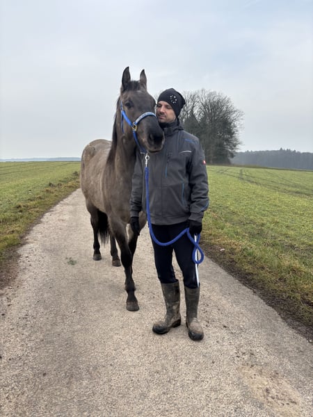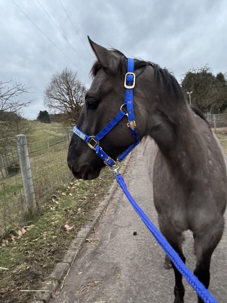 Stute ideal für Wanderreiter Wir suchen für unsere sehr großrahmige Stute (wird ca 1,58) den passenden Partner. Sie wird bereits im Gelände von meiner 18-jährigen Tochter geritten und beherrscht Schritt, Trab und Galopp, nicht perfekt aber der nächste Schritt wäre ein professioneller Beritt. Sie ist wahnsinnig gerne im Gelände und eignet sich absolut für Wanderritte. Mehr können wir noch nicht sagen. Wirwollten sie bereits schon wegstellen in Beritt, aber sie ist zu sehr gewachsen und war stark überbaut. Sie hat sehr schöne weiche Gänge. Sie ist recht ranghoch aber freundlich. Sie ist geimpft, sehr artig beim Schmied, barfuß und regelmäßig entwurmt. Wir hatten sie für meinen Mann gekauft, aber er braucht eher etwas erfahrenes und Jungpferd war nicht die richtige Entscheidung. Sie lebt in einer Gruppe mit acht anderen Pferden und versteht sich sehr gut. Sie lebt im Offenstall.