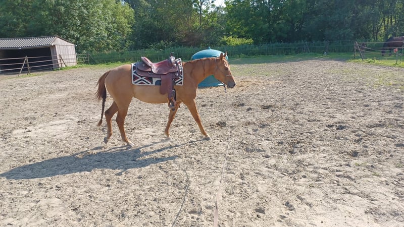 Zeer mooie merrie Geboren op 9/05/2023 Correct op voeten en benen Röntgenologisch goedgekeurd (zonder opmerkingen) voor sport en fokkerij op 12/06/2025 Panel 6 N/N Red Dun kleur NRHA competitie licentie Komt dagelijks in de hand Kent het logeren Is het zadel gewoon Klaar om verder op te leiden Vader is My Royal Gun (Gunners Enterprise) (Colonels Smoking Gun x Be Aech Enterprise) die met Gina Maria Schumacher succesvol was in de sport. De moeder is een rechtstreekse Hollywood Dun It x Topsail Whiz. Grootmoeder Serendipity Whiz was zeer succesvol in de reining sport Voor meer info kan u een bericht sturen via de chat.
