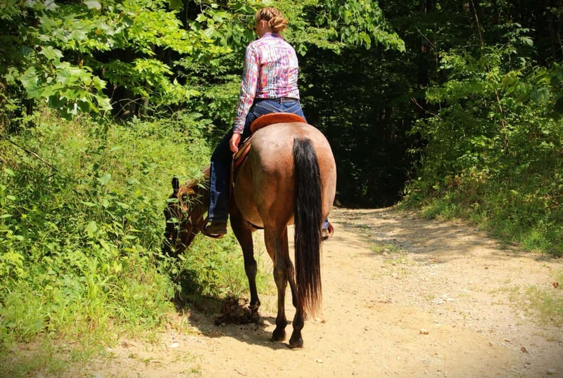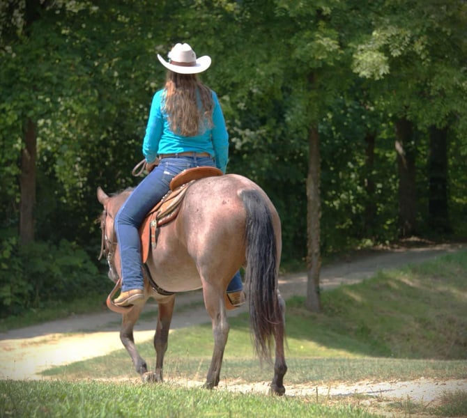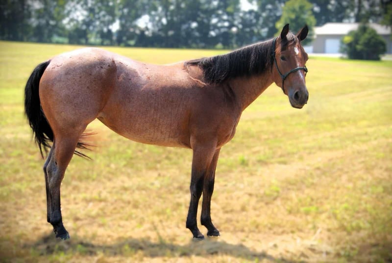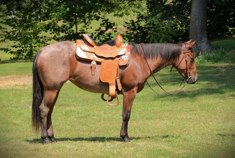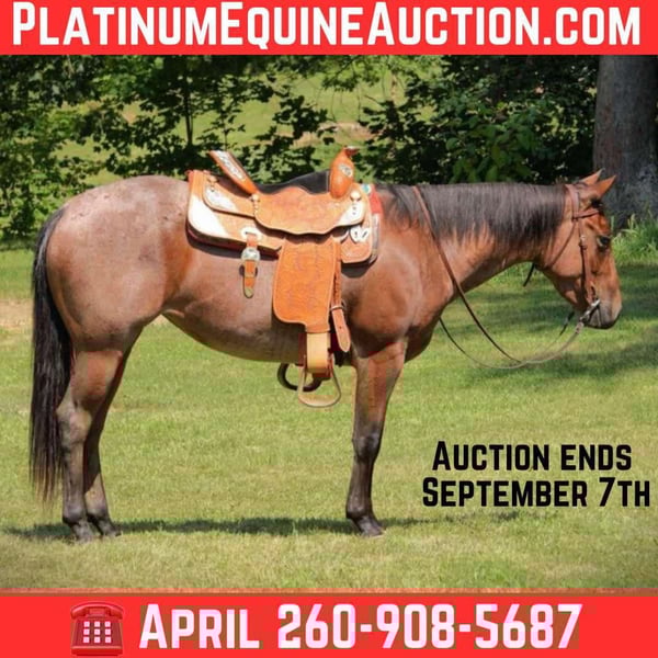 ONLINE AUCTION Place your bids at www.PlatinumEquineAuction.com Starting Bid $3500 Auction ends September 7th, 2025 Need a new saddle? Check out White Rock Saddles on our website or Facebook I am privileged to offer you “Peppys Blue Roses”. “Cats playin on time” x “Duals Blue Roses Dox”. Dating back to “High Brow Cat” x “Peppy San Badger”. This stunning lady is a 2022 model, AQHA registered Bay Roan mare. Standing a stout 14.2 hands tall and weighing in at around 1,000 pounds. This mare is absolutely beautiful! Lou is a flashy mare that has a outstanding disposition and is always willing to please. Dont let her young age fool you, this mare is already has alot of training and is ready to go in any direction. Lou will trail ride out alone or with a large group of people. She will gladly lead the pack, or stay in the back. She goes through water, crosses logs, brush, tall grass, you name it she will go through it. Lou is 100% TSS and has no vices. Lou will go up and down any terrain reguardless of the condition. She has been ridden by all ages and skill levels of riders. She has been on lots of trail rides with my 15 year old daughter and her friends and has never failed her! Lou will ride bareback and double as well. She is ball broke and tarp broke. Lou has been turnt out with geldings and mares. She is not sour when going away from the barn. She is learning how to side pass and is doing an amazing job thus far. Lou is also working on her spin turns and is believed to be 80% finished by the sale. She will stand tied all night long wherever you park her. Lou has zero bad habits. No paw, kick, or bite. She does not require shoes as we only have them on her for trail riding in rocky terrian. Lou will ride western and English. She lopes right off with the correct lead everytime. She stands perfect for the ferrier and loves to be hosed off. She stands perfect for a bath and to get clipped. Lou trailers like a dream, she just about loads herself. Lou is always the first to meet you at the gate and is very easy to catch. Lou has road miles and has even been ridden along the side of a main highway. She always stays confident in any situation that you put her in. She likes to do arena work, and is excelling in pattern work. This flashy mare has all the right breeding to excel in any performance direction you want to take her in. Please come to the farm and check her out! If you have any further questions or want to set up a Facetime please reach out! I can set up reliable hauling anywhere in the U.S….We would even be willing to haul her ourselves to make sure she arrives to you at her best! Located in Camden, MI. For more info contact April with Mid-West Performance Horses 260-908-5687 ONLINE AUCTION Place your bids at www.PlatinumEquineAuction.com Starting Bid $3500 Auction ends September 7th, 2025 Need a new saddle? Check out White Rock Saddles on our website or Facebook