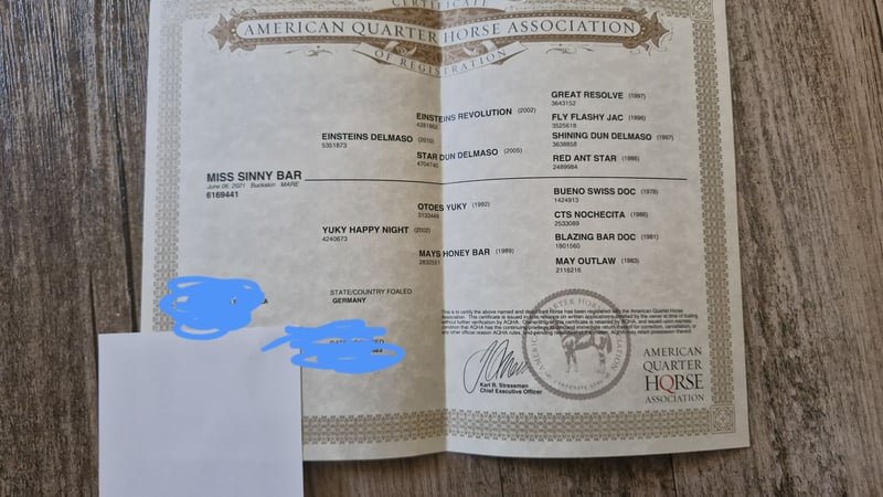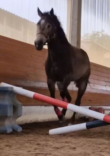 If interested, please call! Messages will not be answered! With a heavy heart, I have decided to part with my little Quarter Horse mare Missy! I simply do not have the time to give my two young horses the attention they need and to fully exercise them. Missy is a 4-year-old granddaughter of Einstein Revolution, currently about 1.49m, a slim, sporty, and elegant type - not a weight carrier and a truly great mover! She has been with me for 2 years and has been trained according to the Pro Ride concept. She shows herself to be very willing and talented in free work (lying down and retrieving her little Kracke is her easiest and favorite exercise) and always wants to please! However, she is absolutely not a beginner's horse - she is very dominant and has a strong opinion of her own! She is people-oriented and seeks closeness but also tests her boundaries anew all the time! Currently, she is in a large mixed herd and has access to hay and pasture 365 days a year! About 1.5 years ago, she had a trailer accident in which she injured her back. This injury has been completely healed and does not hinder her at all! She is fully rideable. Loading in the trailer is also not a problem, and I have been out and about with her a lot since then and have participated in various courses! This is not an urgent sale! We are located in Hitzhofen near Ingolstadt. I only want to place her in experienced hands and with someone who has a lot of time. An open stable would be desirable - she knows nothing else. For more information, feel free to call me. On my Instagram account feelyourhorse.manship, you will find many videos and impressions of her. Mobile 0176 322 144 05 Best regards!