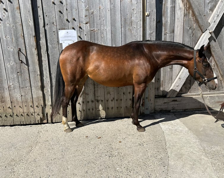 Our Berry was born with us in 2022 and grew up in a herd in an open stable environment with other young horses. She is very sweet and people-oriented. She is now ridden in all gaits and always eager to please. Videos available upon request.