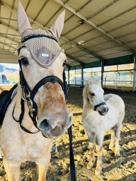 🍀FOR SALE 🍀 ⭐️ESSENZA D'ORO & il suo piccolo MANGO⭐️ Non sono solo due cavalli. Sono un legame, una storia iniziata insieme. ESSENZA D'oro, 4 anni, 1.45/1.48 al garrese. Attualmente in inizio doma (ha avuto il puledro a 3 anni), è una cavalla buonissima, dal carattere dolce e disponibile. Per chi lo desidera, c'è la possibilità di averla completamente domata. È sanissima, e in ordine con documenti APA (italiani) e coggin test. Il suo puledro Mango, 2 mesi, è già super bravo: si lascia spazzolare, coccolare e gestire con serenità. È curioso, equilibrato e molto affettuoso. Vengono venduti esclusivamente insieme. Cerchiamo per loro una famiglia consapevole, presente e capace di donare amore e stabilità, perché meritano una casa vera. No curiosi, no affaristi, no perditempo. Solo persone seriamente interessate e responsabili. POSSIBILITÀ DI TRASPORTO IN TUTTA ITALIA E ESTERO Zona Bergamo Per ulteriori informazioni 3917059140. (NON RISPONDO A MESSAGGI)