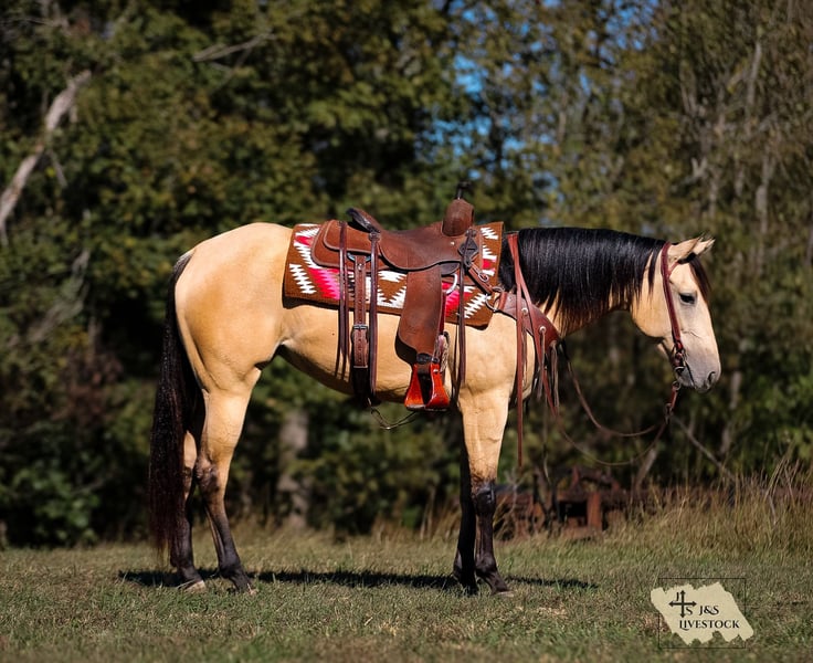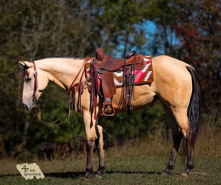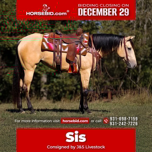 ⚜️𝐓𝐇𝐄 𝓗𝓮𝓻𝓲𝓽𝓪𝓰𝓮 𝐖𝐢𝐧𝐭𝐞𝐫 𝓒𝓵𝓪𝓼𝓼𝓲𝓬⚜️ Happening now thru MONDAY | DECEMBER 29th - Available EXCLUSIVELY on HorseBid's website! For more details and to register visit: www.Horsebid.com CONSIGNOR CONTACT: J&S Livestock 931-698-7159 or 931-242-7226 LOCATION: Santa Fe, TN BREED: Quarter Horse REGISTERED: Yes REGISTERED NAME: JL Sizzlin Poco COLOR: Buckskin HEIGHT: 15.2 AGE: 3 GENDER: Mare JL Sizzlin Poco AKA Sis A stunning, athletic and most of all, brilliant minded 2022 model AQHA buckskin mare, standing 15.2 hands. Sis is truly the definition of kindhearted, willing, intelligent and talented. For just a 3yr old, I promise you will not find a more gentle, and honest young mare her age. This is a horse that has truly been a privilege to ride and most of all makes you want to go out and ride- it truly is such an honor to be around her. She’s as smooth as they come to ride, and as easy to handle as you could want. Sis is a fantastic mover, she has an effortless stop and beautiful lead changes- her lope is like a dream, so easy and slow it feels like you’re floating on a cloud. She’s super soft in the bridle too. Point her wherever you desire and she will not hesitate. On the ground or on her back she is confident, and level headed at all cost. Busy towns, traffic, rivers, creeks, steep inclines, wooded narrow trails, rocky ground, you name it and she will carry you through it, and with no doubt in my mind always taking care of rider. Sis has been trail rode extensively, pushed and checked cattle on our farm, and we have lightly roped calves off her in the pasture. Exposure is something this gal has covered. With her athleticism and quick learning ability (show her once and she will always give it her all from start to finish), Sis would excel great in any type of discipline. She stands great for a bath, trailers well, and is easy to saddle. This mare has a great mind, big heart, and willing attitude. She’s dependable, and will always be the same horse every day. Don’t let her age fool you, with her impeccable manners and quietness, this is a mare we are TRULY proud to offer, and feel confident most anyone with the ability to ride will absolutely love Sis. We would love to talk more about Sis, so give us a call or feel free to text us! She has a current coggins and basic PPE. J.T. 931-698-7159 or Bailey 931-242-7226