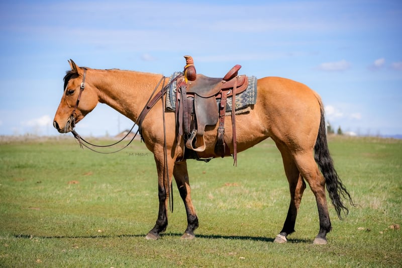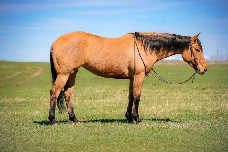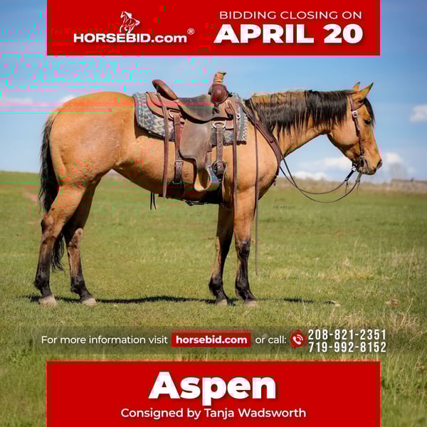 ⚜️𝐭𝐡𝐞 𝓔𝓵𝓲𝓽𝓮 𝐒𝐩𝐫𝐢𝐧𝐠 𝐂𝐥𝐚𝐬𝐬𝐢𝐜⚜️ Happening now thru MONDAY | APRIL 20th - Available EXCLUSIVELY on HorseBid's website! For more details and to register visit: www.Horsebid.com CONSIGNOR CONTACT: Tanja Wadsworth 208-821-2351or 719-992-8152 LOCATION: Saint Anthony, ID BREED: Quarter Horse REGISTERED: Yes REGISTERED NAME: Six Bars Of Dunit COLOR: Dunskin HEIGHT: 15 AGE: 4 GENDER: Mare Aspen is a 4 year old QHAH dun mare with soft brown eyes and loving personality. She stands around 15 hands tall and will get you noticed wherever you take her. she has a nice hip, straight legs, and the pretties dark points. Aspen wants to be soft in your hands and throughout her body. She has been exposed to cattle, tarps, dogs, and much more. She crosses water with ease as well as a teeter totter bridge. Aspen has been rode down the road and around traffic. She rides out alone or in a group as well. She has a great start and has the potential to go in many different directions. We recommend a confident rider with experience to continue on with her. She is good to shoe, haul, and bathe.