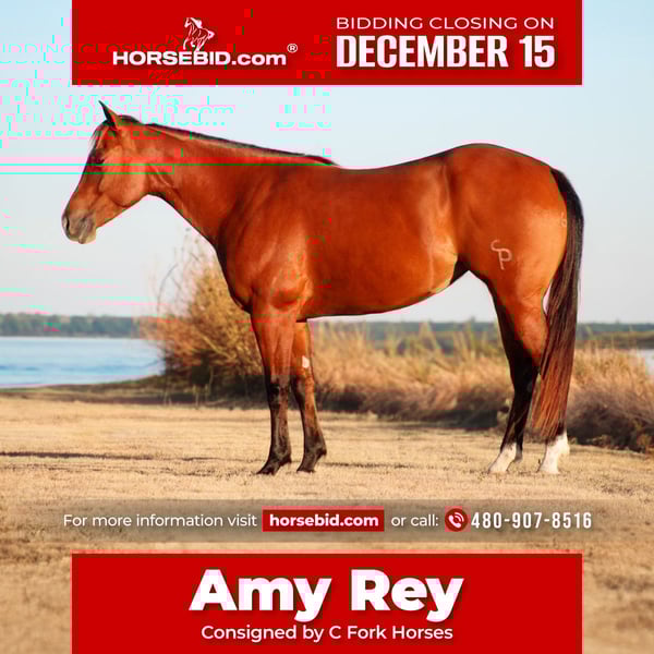 🎄𝐓𝐇𝐄 𝑯𝒐𝒍𝒊𝒅𝒂𝒚 𝐂𝐋𝐀𝐒𝐒𝐈𝐂🎄 Happening now thru MONDAY | DECEMBER 15th - Available EXCLUSIVELY on HorseBid's website! For more details and to register visit: www.Horsebid.com CONSIGNOR CONTACT: C Fork Horses 480-907-8516 LOCATION: Amarillo, TX BREED: American Quarter Horse REGISTERED: Yes REGISTERED NAME: Amy Rey COLOR: Bay HEIGHT: 14.3 AGE: 4 GENDER: Mare I used to tell people I wasn’t a mare person. I said it the same way some folks say they don’t like sushi or country music. Then I climbed on sweet Amy Rey, and it turned out I just hadn’t met the right mare. Amy is a 2021 AQHA mare with the kind of feel you notice the second she takes a step. She has the mind of a veteran, a heart of pure gold and cow sense that does half the thinking for you. She’s steady in a way most horses pretend to be. ATVs ripping past, dirt bikes popping off, gunfire rolling over the hill, and she acts like she’s listening to a podcast you can’t hear. She just keeps on with the job like it’s Tuesday, never wasting energy on nonsense. (Wish I could say the same.) Her pedigree backs up everything you feel in the first five minutes. She is by Smart Reyvolution (2012), an NCHA money-earner and full brother to Dual Smart Rey with $330k+ earned, SVR Reyl Smart with $275k+, and Reys Smart Lookin with $82k+. Smart Reyvolution is a son of Dual Rey, one of the most influential sires the cutting world has ever seen with over 49.5 million dollars in progeny earnings. Her dam is by Gists High King, a sire known for producing real using horses that earned their keep in the arena and outside of it. She rides exactly the way she’s bred to. Amy is AQHA Ranching Heritage eligible, and we are happy to pay her in for a buyer who wants to take her that direction. Her cow sense is the quiet, confident kind that matters in real work. She pins an ear, softens her body, and reads a cow like she already knows how the story ends. Amy has covered big pastures, sorted in tight spots, and worked alleys where cattle test a horse’s patience, honesty, and sometimes their religion. She has been used on a yearling operation and handles the chaos like a professional. Whether you're shipping or when the alley is full of 900 to 1,000 pound steers trying to blow past her, she plants herself and makes them reconsider. She likes a challenge and is not afraid to whack one when it needs it. In the feedyard, her quick feet come in handy when the cattle get real creative about avoiding the gate. Rain or shine, deep or slick, she stands up in any pen and gets the job done from whichever side of the gate you are on. She is the kind you want with you on the tough days. What I like most is her switch. When you ask for it, she’ll come alive and spin like the ground is on fire, quick and catty with an automatic feel that keeps you right with her. The moment you’re done, she turns it off and will lope around with a string around her neck. Not dull. Not a push-style horse. Just broke, steady, and smart. A mare that can give you that kind of grit and still ride soft and simple is hard to find. She rides on a loose rein, has a great stop and back up, offers smooth lead departures and lead changes. Transitions up and down through her gaits without resistance, stays soft through her ribcage, and never argues about where her feet need to be. You can ride her bridleless not because she’s dull, but because she actually listens. Bit, halter, or nothing at all, she stays the same horse. Now, the part everyone loves to hear. I am 7 months pregnant, my balance isn’t what it used to be, and my center of gravity has filed a formal complaint. Amy is about the only horse on the place I trust not to exploit that. No buck. No freshness. No stupidity. And she has never once questioned the job. I can pull her from the pen on a below-freezing, windy Panhandle morning when the air stings your face, and she shows up 100%. Stands quiet, steps off soft, and goes straight to work. I’ve been able to sort and gather cattle, long-trot hills, and still play with spins and stops, and I have never had to question my safety for a second. I mean… I ride pens bridleless on her. Hello?! She stays honest and protects her rider while staying sharp enough to get a job done. Amy is truly the best of both worlds. If you want a horse you can trust more than common sense says you should, this is her. On the ground, she is as simple as they come. Easy to catch. Easy to saddle. Easy to haul. Easy for the farrier. She fits into any herd and stays low on the totem pole. She gets along with dogs, goats, chickens, ponies, and every critter that wanders by. The only thing I’ve seen her want to get after is a cow… which, frankly, is a personality trait I admire. She stands 14.3 hands and is the perfect size. UTD & ready to roll. Amy is sound, and healthy. And yes, vet checks are totally welcome! The truth is simple. I have not had this much fun on a horse in a long time. You never realize just how much you value a good mind until you’re pregnant and climbing on something with four legs and opinions. She is the one I reach for first and the one I put away last. Life is changing, and that is the only reason she is being offered for sale. If every mare was like Amy, geldings would be out of business. Want to visit about Amy? Call or text us 480-907-8516. She’s the kind that sells herself; we just answer the phone. For buyer assurance, please note: Amy has had no exposure to outside horses or facilities within the past 30 days. We are happy to offer 14 days of complimentary board after purchase to accommodate any transport needs or biosecurity concerns. She will be fully cleared by a licensed veterinarian with a same-day health certificate before she leaves. Transportation assistance available.