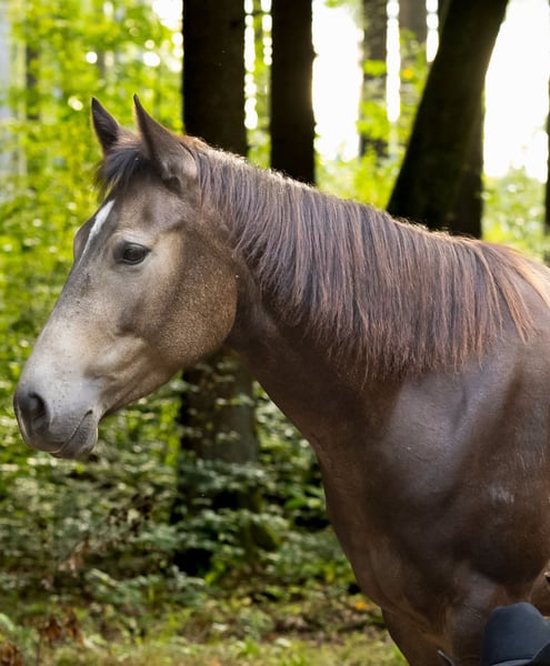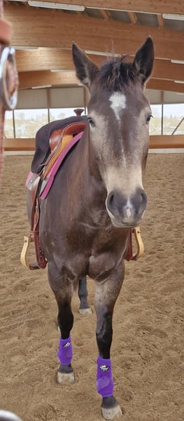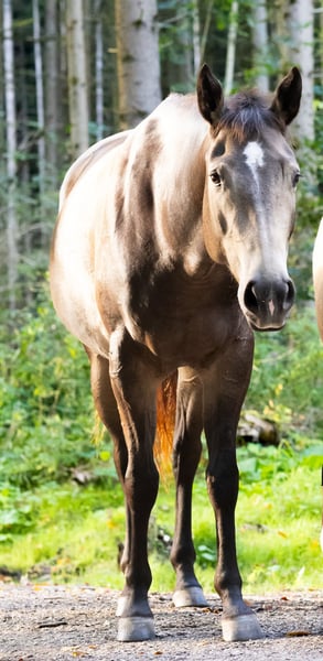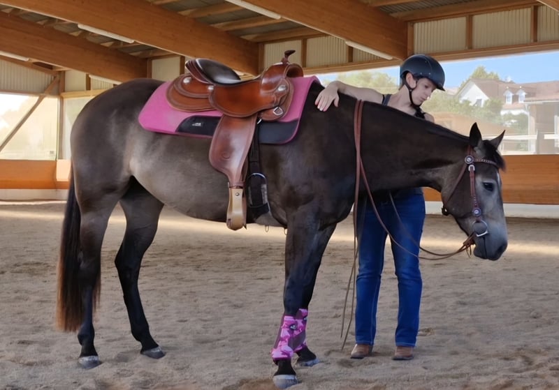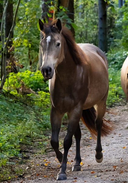 Miss Sinny Bar ist eine im Juni 2021 geborene buckskinfarbene Quarter Horse Stute mit einem Stockmaß von etwa 150 cm. Sie ist elegant, sportlich gebaut und gehört nicht zu den Gewichtsträgern, überzeugt aber durch ihre harmonische Entwicklung und ihre natürliche Athletik. Trotz eines angebrochenen Dornfortsatzes im Alter von zwei Jahren, der laut Tierarzt vollständig ausgeheilt ist, ist sie heute gesund, voll belastbar und wird regelmäßig geritten. Gerne kann der Tierarzt dazu befragt werden. Sie ist 5-Panel n/n über die Eltern, regelmäßig geimpft, entwurmt und zahnärztlich kontrolliert, läuft barhuf und war stets unter professioneller Sattelkontrolle. Aktuell lebt sie im Offenstall mit 24-Stunden-Heuversorgung und Weidegang und zeigt sich dort ranghoch innerhalb der Herde. Im Umgang ist sie ein sehr liebes, menschenbezogenes und verschmustes Pferd, das gleichzeitig willensstark, neugierig und manchmal etwas ungeduldig ist. Sie möchte immer gefallen, lernt schnell und zeigt viel Eifer sowie Offenheit für neue Aufgaben. Da sie noch viel hinterfragt und eine klare, faire Führung braucht, ist sie kein Anfängerpferd. Miss Sinny Bar wurde schonend und vielseitig nach dem Pro-Ride-Konzept ausgebildet. In der Halle läuft sie sicher in Schritt, Trab und Galopp und geht sowohl alleine als auch in der Gruppe zuverlässig ins Gelände. Besonders in der Freiarbeit sowie in der Boden- und Longenarbeit zeigt sie großes Talent. Durch ihre sehr gute Reining-Abstammung (Einsteins Revolution x Bueno Swiss Doc) ist sie nicht nur als Nachwuchspferd für ambitionierte Freizeitreiter interessant, sondern perspektivisch auch für die Zucht. Der passende Sattel kann auf Wunsch mit erworben werden. Da es sich um keinen Notverkauf handelt, wird großer Wert auf ein geeignetes Zuhause gelegt, in dem diese talentierte Stute weiter gefördert und abwechslungsreich beschäftigt wird. Miss Sinny Bar bringt alles mit, was man sich von einem jungen, motivierten Pferd wünscht, das gemeinsam mit seinem Menschen wachsen möchte.