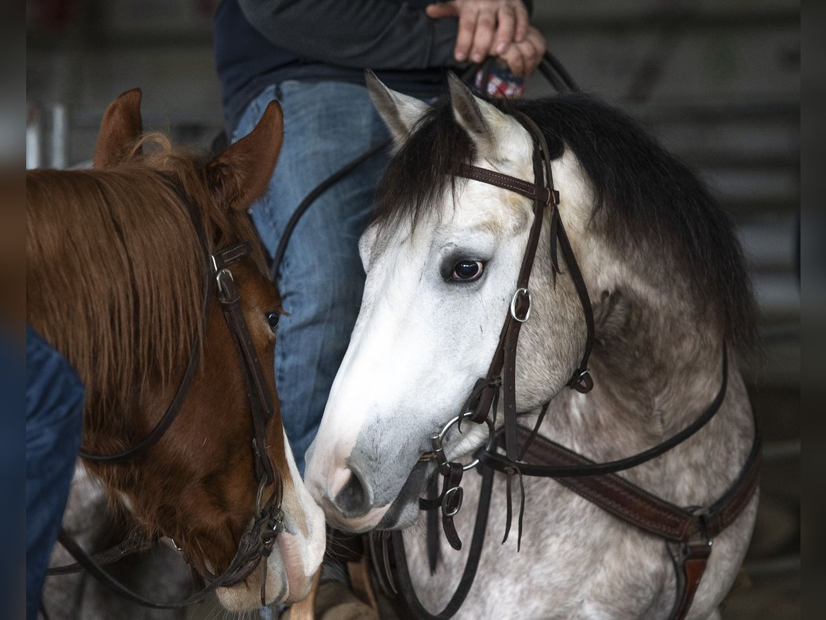 Elegant American Quarter Horse mare, born in 2021, with a striking grey coat that immediately draws attention. Standing approximately 15.5 hands at the withers, she combines a compact, muscular build with a well-balanced conformation, making her an ideal partner for a variety of disciplines. This well-bred mare has been primarily trained and ridden in Western disciplines, demonstrating a calm and willing temperament that suits both experienced riders and those looking to develop their skills. Her smooth gaits and responsive nature ensure a comfortable ride, whether for pleasure riding, trail work, or more advanced Western activities. She has never been shown, as we were not interested in competition. Her youth and excellent pedigree promise a bright future, and her friendly, cooperative attitude makes her a pleasure to handle. Whether you're a seasoned rider seeking a reliable partner or an enthusiastic owner eager to bring a promising mare into your stable, she offers great potential and an appealing presence. A true gem for anyone looking to add a versatile, well-started Quarter Horse mare to their herd. Clear X-rays available (March 2026) Video on demand