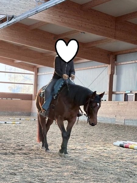 N Green Somnia ist eine 2021 geborene Quarter Horse Stute in der Farbe Bay mit einem Stockmaß von ca. 165 cm. Sie ist bildhübsch, großrahmig und elegant gebaut, dabei sehr gut entwickelt und besitzt ein äußerst stabiles Fundament, wodurch sie auch größere Reiter*innen problemlos abdeckt. Ihr korrektes Exterieur und ihre harmonische Erscheinung machen sie zu einem echten Hingucker. Charakterlich ist sie eine absolute Ausnahme: sehr ruhig, menschenbezogen, stets freundlich, verschmust und im Umgang vollkommen unkompliziert. In der Herde ist sie rangniedrig, lebt aktuell im Offenstall in gemischter Herde, kennt aber auch Boxenhaltung und passt sich neuen Situationen problemlos an. Die Stute ist gesund, regelmäßig geimpft und entwurmt sowie schmiede- und verladefromm. Bei der Arbeit zeigt sie sich stets motiviert, lernt sehr schnell und bringt konstant Leistung, egal ob im täglichen Training oder auf dem Turnier. Sie besitzt keine schlechten Eigenheiten und zeigt sehr viel Potenzial für den Turniersport. Aufgrund ihres Alters ist sie kein typisches Anfängerpferd, sondern ein erstklassiges Nachwuchspferd für Pleasure und Allround, das weiterhin gefördert werden sollte. Somnia befindet sich in Profiberitt bei Danny Reinkehr und wurde im letzten Jahr in EWU Jungpferdeprüfungen in Basis und Trail sowie in der Pleasure vorgestellt. Sie ist in das EWU Jungpferdeprogramm sowie in die DQHA Futurity einbezahlt, zudem gibt es einen Gutschein für einen Start auf einem Futurity-Turnier. Sie war mehrfach auf Reitkursen bei namhaften Trainern wie Henning Daude, Alexander Eck und Mateo Toniollo und kennt auch Ausritte im Gelände in der Gruppe. Alle Papiere der AQHA sowie der Equidenpass sind selbstverständlich vorhanden. Mit ihrer hervorragenden Abstammung, ihrem Talent, ihrem guten Fundament und ihrem liebevollen Charakter ist sie das perfekte Pferd für jemanden, der eine junge, talentierte Partnerin sucht und sie weiter fördern möchte.