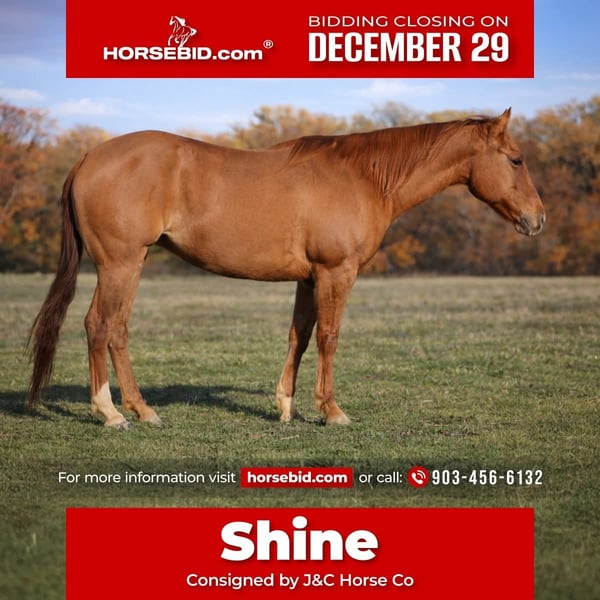 ⚜️ 𝓗𝓮𝓻𝓲𝓽𝓪𝓰𝓮 𝐖𝐢𝐧𝐭𝐞𝐫 𝓒𝓵𝓪𝓼𝓼𝓲𝓬⚜️ Happening now thru MONDAY | DECEMBER 29th - Available EXCLUSIVELY on HorseBid's website! For more details and to register visit: www.Horsebid.com CONSIGNOR CONTACT: J&C Horse Co. 903-456-6132 LOCATION: Greenville Tx BREED: Quarter Horse REGISTERED: Yes REGISTERED NAME: CTK FLASHY HOT LYNX COLOR: Dun HEIGHT: 14.3 AGE: 5 GENDER: Mare 5 Year Old Finished All Around Mare | Ranching Heritage Eligible We are extremely proud to offer Shine, a 5 year old mare we raised and started entirely in house. Shine is the definition of a finished, proven, all around horse the kind that’s hard to find and even harder to replace. Shine has been extensively used outside and knows a full day’s work. She has doctored calves, gathered pairs, pulled cows in the trailer, worked the feedlot and sale barns, and has even shagged bulls at bull ridings. She is a finished head and heel horse, capable in 7–12 slide, and has been used at rodeos. She is strong to the horn, works the rope correctly, and is truly cowy, with plenty of grit when it’s time to work. Beyond the ranch and arena, Shine is patterned on the barrels, solid on the trails, and has carried flags at rodeos. She is our go to horse for starting colts, steady, confident, and trustworthy. One of the biggest testaments to her mind she was flagging colts on her very first day under saddle. Shine is fancy broke with a true “joystick” handle, extremely responsive yet forgiving. She stays the same whether she’s ridden every day or has time off. She is currently being ridden and used by our 10 year old son and serves as our lesson horse, packing kids safely and confidently, yet she’s capable enough for experienced riders to go right to work. Gentle and suitable for youth, amateurs, and beginners Forgiving, patient, and honest Ground ties, lowers her head to halter and bridle Stands quietly while kids climb on Excellent ground manners She is easy to haul, eats and drinks on the road, and self-loads simply saddle her, ask her to step on, and she goes to the front. When you’re done, open the door and ask her to back out no need to step in the trailer. She’ll open and close gates on her own, stands tied or stalled quietly, and is an easy keeper. Shine can stay barefoot or be shod, hauls and turns out well with mares or geldings, and is not a mareish mare. She requires absolutely no maintenance. If you’re looking for a horse that has done it all, seen more miles than most, and is safe, broke, and dependable, your search is over. Shine is the kind that turns heads and earns compliments everywhere she goes. While she will be greatly missed in our barn, we’re excited for her next owner to enjoy this once in a lifetime mare.
