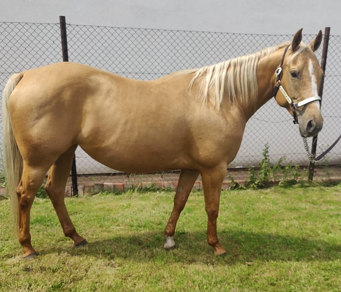 Kono es una yegua encantadora que destaca por su carácter amigable y sus versátiles habilidades. Es ideal para la equitación western y se muestra en la pista en su mejor momento. También tiene ya bastante experiencia en el campo. Está bien entrenada y ha sido montada profesionalmente en varias ocasiones. Su naturaleza bondadosa la convierte en una compañera ideal para jinetes de casi todos los niveles de experiencia. Se recomienda tener algo de experiencia en la equitación. Si está interesado o necesita más información, no dude en contactarme al número de teléfono indicado.