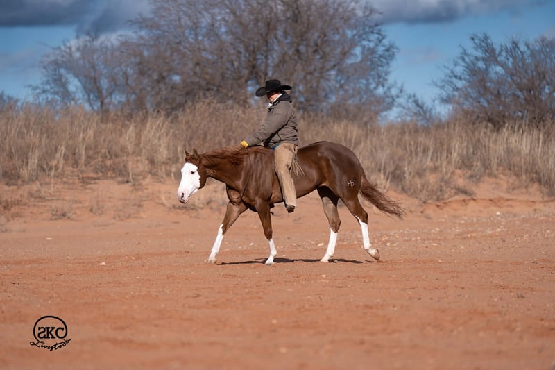 🌟𝑨𝒑𝒓𝒊𝒍 𝐀𝐋𝐋 𝐒𝐓𝐀𝐑 𝐋𝐈𝐍𝐄𝐔𝐏🌟 Happening now thru MONDAY | APRIL 6th - Available EXCLUSIVELY on HorseBid's website! For more details and to register visit: www.Horsebid.com CONSIGNOR CONTACT: SKC Livestock 806-282-7093 LOCATION: Canyon, TX BREED: Quarter Horse REGISTERED: Yes REGISTERED NAME: A Brown Eyed Girl COLOR: Sorrel HEIGHT: 15 AGE: 6 GENDER: Mare Allow us to introduce, A Brown Eyed Girl aka Pixie a gorgeous, double registered sorrel mare that has been successfully shown and has won money in the ranch classes. She has all the chrome and eye appeal you could possibly put on one and to top it off she was raised by Hilldale Farm. Pixie is sired by Heavy Duty Chex earner of over 140k and out of a daughter of the great Colonels Smoking Gun. Pixie is a beautiful mover and is broke to death. She has a stylish long trot, a nice jog and she circles pretty. This flashy lady spins both directions side passes both ways and is light in her face and says soft as butter. This is a horse you can leave off for any amount of time and not have to worry about she will stay the same quiet, kind and gentle ride on even the coldest stays. Pixie is an old soul and has been a favorite for our little ones and the more novice riders around our barn. We have rode Pixie outside extensively to both trail ride and to gather cattle, she crosses water, and rocky terrain with ease, she’s even quiet and safe to ride through our busy little town. Pixie has no spook or bad habits and is extremely versatile. We have tried hard to find her limits and just never seem to, she has a huge heart and a tremendous amount of try. We have rode her everyday possible, bareback, double, triple, English western heck we have even used her to pony some colts she never tells you no. Pixie has a sweet personality she likes people and likes attention but still has the perfect manners. This is truly a dream horse, please call us with any questions.