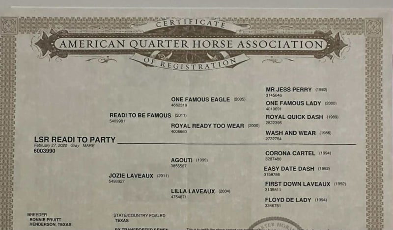 LSR Readi to Party è una grande e bellissima puledra grigia di razza AQHA, nata nel 2020, che quest'anno compie 6 anni e misura circa 1,65 m (16.2 hh), con una presenza e una qualità che tutti cercano in una cavalla da potenziale. È costruita correttamente, di sangue nobile, e possiede l'atletismo e l'intelligenza per eccellere in diverse discipline. Party è stata utilizzata in un programma di lezioni di inglese e ha esperienza anche con i ostacoli. È stata montata da cavalieri alle prime armi e inesperti. È una cavalla fluida e bellissima nei movimenti, con un passo morbido e armonioso, che scivola senza sforzo intorno all’arena. Transita bene tra i ritmi, allunga facilmente il passo, e si mantiene naturalmente equilibrata. È stata avviata correttamente e conosce tutti i segnali tipici di un giovane cavallo ben addestrato. Rispetta la pressione delle gambe, muove con volontà i posteriori e cede bene al contropeso. È stata anche fatta trotare intorno a un pattern di barrel e mostra un grande potenziale per diventare il sogno di qualcuno come cavallo da rodeo o da performance. La sua versatilità la rende adatta sia per disciplina inglese che western. Non ha mai tentato di imbizzarrire o di fare qualcosa di sbagliato, nemmeno dopo mesi di inattività. A terra, Party è estremamente sicura e facile da gestire. Sta tranquillamente per essere coperta, si avvicina con calma alla rastrelliera, e resta paziente mentre viene legata. Si fa spazzolare, lavare, e è il sogno di ogni ferratore per la ferratura. Carica e trasporta bene, si rapporta positivamente con gli altri cavalli, ed è felice sia in stalla che al pascolo. È una giovane cavalla di buona genealogia, con tutto il suo futuro davanti a sé, e la base perfetta per chi cerca un cavallo sicuro e di qualità, pronto a essere portato a qualsiasi disciplina desideri. Si trova a Bitterwater, in California. Per maggiori informazioni o per vederla di persona, contatta Cheyenne Rey al numero 831-537-8746.