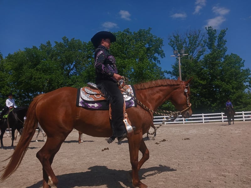 "AVAILABLE ON ONLINE HORSE AUCTION AT www DOT MagicHorseAuction DOT com BIDDING OPEN NOW thru TUESDAY | October 14TH! - BUY IT NOW AVAILABLE! *Final price will be determined on auction site* CONSIGNOR CONTACT INFO: Sarah Collins 419-822-7526 LOCATION: Walbridge, OH First things first Sage CAN be registered AQHA. Her sire is Kissin the Girls, who needs no introduction, and her dam is Only Invite the Hot. I have raised this one of a kind mare since she was 4 months old. Life simply got in the way of me continually procrastinating registering her. Sage is 16.2 hands and built like an absolute house. No pictures can do this true all around mare her full justice! Sage began her show career as a yearling in Showmanship and Halter. Sage was shown in ranch, western and English pleasure, horsemanship, equitation and trail until she was a 4 year old. Sage does patterns excellent as well. Sage was never pushed or overworked. She was raised the right way and broke to ride slow and correct. Her jog/long trot is finished for pleasure shows. Her lope needs a tune up for Western pleasure but is ranch or English ready. You can show this mare all day with very little prep. Her stamina never wears out! She LOVES the show pen and knows her job well! She rides one handed and is spur trained. Extremely responsive to leg while doing a 360 or sidepass. Sage truly does everything! Sage is very accustomed to the show life and hauled all over showing in all the events. On the trails she crosses whatever is in her path including logs, bridges, mud and water. She will follow, go in the middle or lead all while riding on a loose rein. Sage carefully places her feet while taking care of her rider. Sage is a true DIY horse and can sit for months at a time and will ride exactly the same way, every time. She remembers her training and stays broke! She is traffic safe, accustomed to tractors, motorcycles, bikes and four wheelers. Her entire life she has received the best care, regular vaccines, wormer and hoof care. Shes never worn or needed a shoe, even on rocky terrain. Never taken a lame step. Regularly maintained with chiropractor and massages. Never injected or any other maintenance. Sage is in a mixed herd with 24/7 turnout on grass hay. Very easy keeper on 6 pounds grain daily. Sage also stalls phenomenal without cribbing, pawing or kicking. Sage will meet you at the gate everytime in any size field. She clips great (twitch for ears), loads, bathes and ties. Absolutely no holes or vices in this mare! The ONLY reason this gorgeous mare is being sold is due to me suffering a back fracture in 2023. It's not fair to this mare to sit in a field or be an occasional trail horse. I can answer any and all questions about her by calling Sarah Collins 419 822 7526. Transportation can be arranged anywhere using safe, well known haulers. Don't pass up this iconic mare with her whole show career ahead of her and then can produce top quality foals.