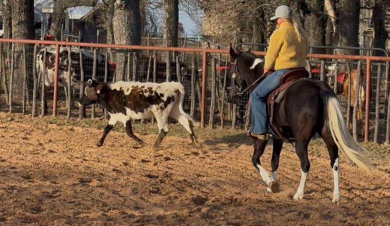ONLINE AUCTION Place your bids at www.PlatinumEquineAuction.com Starting Bid $3500 Auction ends March 9th, 2025 Need a new saddle? Check out White Rock Saddles on our website or Facebook! Zora is a 14.1H, 5 yr old TRUE black overo paint mare. This GORGEOUS mare has one of the SWEETEST personalities around. She is a super fun, willing to please all around mare! She loves riding outside and also has potential in the arena to go in any direction! She’s been owned by the same people her whole life where they just used her to pleasure ride! Zora is talented enough to go on to make a great youth prospect or trail horse for someone looking for a fun one to enjoy! She rides good, knows all the major basics and is ready to go on with! She walks, trots and lope when asked and stops good! She’s not spooky, no buck, bolt or rear and is easy to get along with! She absolutely loves attention and will be the first one to greet you in the barn or pasture! Zora naturally takes to all new things and is very bravely adventurous. She is safe and gentle, loads, leads and bathes great! She would be the perfect addition to any family looking for a fun one to go one with in any discipline! She’ll go all day without a complaint! Don’t miss this sweet, fun, willing to please STUNNING black and white mare. They don’t come around colored like her often with her personality and potential! More pics and videos on her website page at northtexashorsecompany.com/zora. Please call Blair with North Texas Horse Company for more info at 817-757-3046. We are located in Weatherford, TX and can help arrange affordable shipping to anyone!! ONLINE AUCTION Place your bids at www.PlatinumEquineAuction.com Starting Bid $3500 Auction ends March 9th, 2025 Need a new saddle? Check out White Rock Saddles on our website or Facebook!