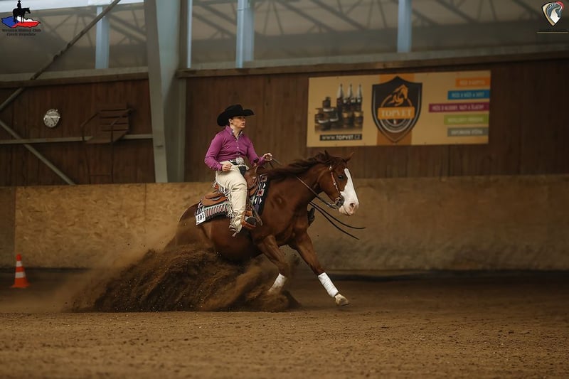 🐴 SK Conquistador Gun Klacz Quarter Horse, kasztanowata, rocznik 2019 Ojciec: SK Gunshiner (po Gunner) Matka: Conquistador Dun Me (po Conquistador Whiz) 📜 Nominacja do NRHA w Europie 📏 148 cm 🏅 Mistrz Punktów 2025 w reiningu amatorskim 🥈 Wicemistrz Czech 2025 w reiningu non-pro 🥇 Mistrz Czech 2024 w reiningu non-pro 🥇 Mistrz Czech 2024 w reiningu junior 👉 Klacz startuje w reiningu. Jest bardzo utalentowana, naprawdę ładna i łatwa w jeździe. Uzyskała wynik 73 w klasach non-pro. 👉 Zdrowe RTG – dostępne dla poważnie zainteresowanych. 🎥 Film z pełnego pokazu dostępny przez WhatsApp +420 774 377 428 📩 Więcej informacji przez WhatsApp +420 774 377 428 📍 Smart ranch – Kozlovice, Czechy