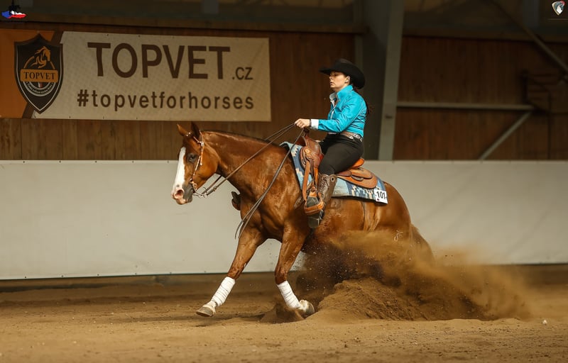 🐴 SK Conquistador Gun 2019 QH mare chestnut Sire: SK Gunshiner (by Gunner) Dam: Conquistador Dun Me (by Conquistador Whiz) 📜 NRHA European Nominated 📏 148 cm 🏅 High Point Champion 2025 Reining Amateur 🥈 Reserve Champion of Czechia 2025 Reining Non Pro 🥇 Champion of Czechia 2024 Reining Non Pro 🥇 Champion of Czechia 2024 Reining Junior 👉 The mare is shown in reining. She is very talented, really nice and easy to ride. Achieved score in Non Pro classes 73. 👉 Clean X-rays - available to serious interested parties. 🎥 Full-length show video available via WhatsApp +420 774 377 428 📩 More information via WhatsApp +420 774 377 428 📍 Smart ranch – Kozlovice, Czech Republic
