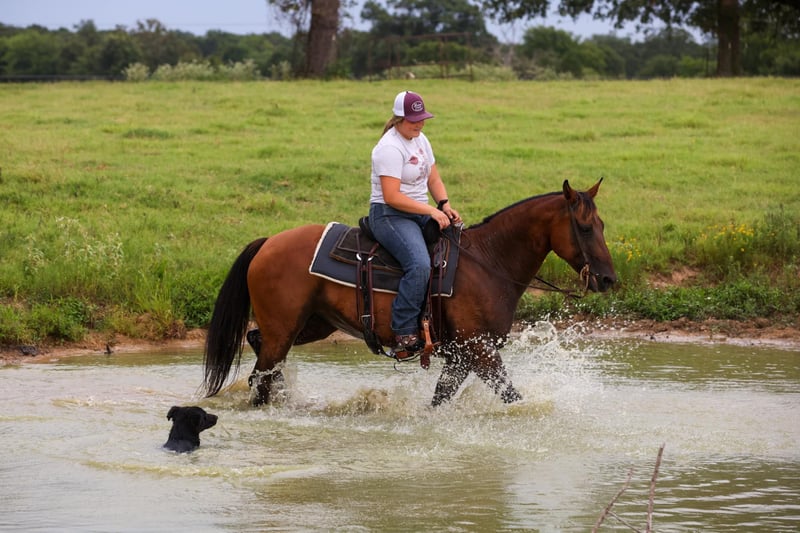 Stella is a stout built, 6 year old mare. She stands 14’3 hands, she’s been used around the ranch in all aspect of ranch work. She has carried flags, she is great on the trails and walks through water, over logs, and handles slopes. Stella is very gentle and easy to catch. She stands to saddle, pick her feet, and brush. She is very easy to get along with and has a great demeanor. Any questions call Kendall Anderson 209-403-7834 Located in Canton, TX.