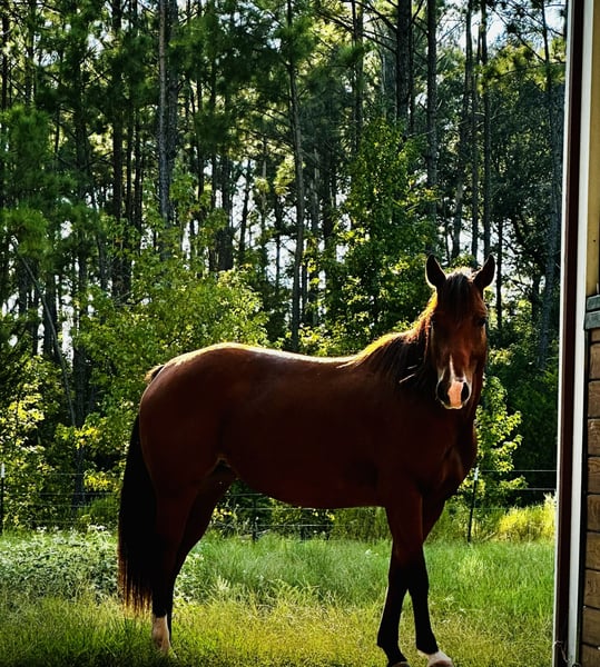 Clean legs and sound. She is ready to find her new show partner and make it big in the ring. She has been handled daily, lunges, loads and hauls. She’s turned out with a mare and gelding and acts like the head mare. Super easy to handle, be around, and enjoys exploring her surroundings.