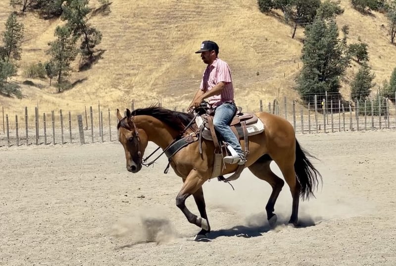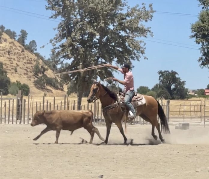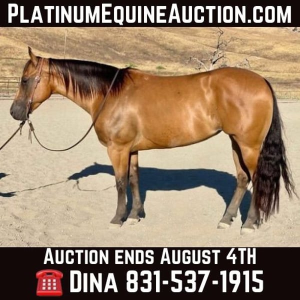 ONLINE AUCTION Place your bids at www.PlatinumEquineAuction.com Starting Bid $3500 Auction ends August 4th, 2024 Need a new saddle? Check out White Rock Saddles on our website or Facebook! Bambi is the most picture perfect gentle natured mare around. With the kindest soft eye everyone looks for. She stands at 15 hands tall 5 years old and has all the shape in the world. Bambi is super easy going and wants to always be a good. Gentle and easy to handle in the saddle and on the ground. She can take you from the mountain tops to the winners circle! She rides amazing in the arena with stylish spins, easy lead changes, making her top notch for Ranch Horse Classes. Bambi has that super slow collected lope on a loose rein she has a nice sliding stop to match. She is great out on the ranch. She is naturally cowy and good to sort cattle and gather out in steep terrain. She will side pass to all the gates and stand tied all day. She is a trooper out on the trails and is confident alone, will lead a group, or happily trail behind. She goes where you point her. This mare is one of the quietest horses to ride and just enjoy. Bambi has been taken town and has handled it all with poise and confidence. Bambi will also be the reliable horse to do trail obstacles with out any hesitation she is one of those horses you can show something to one time and she’s got it. She is so easy to teach new things to and will happily go along with any shenanigans you through her way. She is absolutely a dream. She is a mare that acts like a gelding not marish at all. She has been started roping the sled and has top notch potential in becoming an amazing head horse. If you want a handy broke, gentle for anyone laid back horse Bambi is your girl. She loads like a dream and is safe to have anyone handle this is a rare opportunity to own a horse with this mindset and ability. Bambi will be the horse to get you noticed anywhere you take her. Please contact Longhorn Ranch Dina 831-537-1915 Located in Paicines, CA. ONLINE AUCTION Place your bids at www.PlatinumEquineAuction.com Starting Bid $3500 Auction ends August 4th, 2024 Need a new saddle? Check out White Rock Saddles on our website or Facebook!