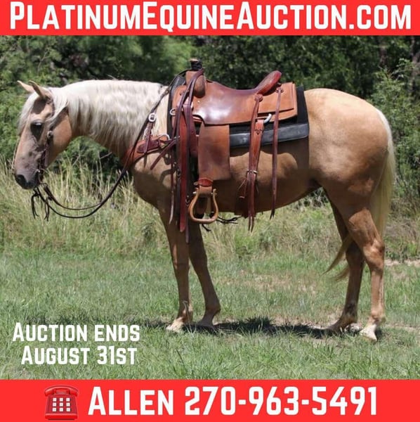 ONLINE AUCTION Place your bids at www.PlatinumEquineAuction.com Starting Bid $3500 Auction ends August 31st, 2025 Need a new saddle? Check out White Rock Saddles on our website or Facebook Barbie is a 15h, 6-year-old grade palomino mare with the look, foundation, and mind to go in several directions. She has been started on the heel side and is tracking slow calves, showing plenty of natural cow sense, athleticism, and a willing attitude. Barbie wants to learn and has the ability to step up with more time in a consistent program. Outside the arena, Barbie is just as solid. She has been used for day work and has no problem covering country, crossing water, and traveling down the trails quietly and confidently. She handles new environments with a level head, making her not only a versatile rope prospect but also a reliable partner for ranch or recreational riding. Barbie has a good handle, is responsive, and stays broke whether she’s in the arena or out on the ranch. She’s the kind you can go use during the day and then bring back to work on in the roping pen. With her combination of athleticism, outside miles, and quiet disposition, Barbie has all the tools to make a competitive heel horse or continue developing into a solid all-around using mare. We are able to arrange shipping anywhere from Hawaii to Canada and any state in the U.S. He is located in Lipan, TX. Please Call or text AM Livestock Allen 270-963-5491 for serious inquiries. ONLINE AUCTION Place your bids at www.PlatinumEquineAuction.com Starting Bid $3500 Auction ends August 31st, 2025 Need a new saddle? Check out White Rock Saddles on our website or Facebook