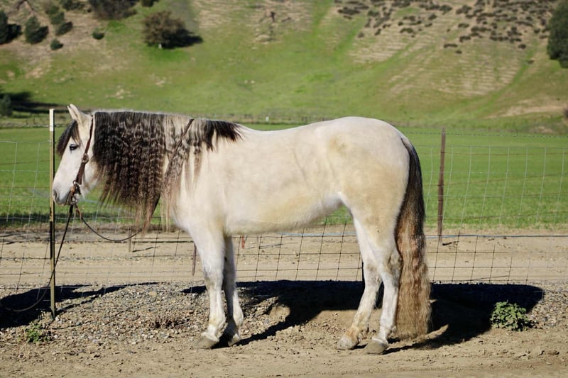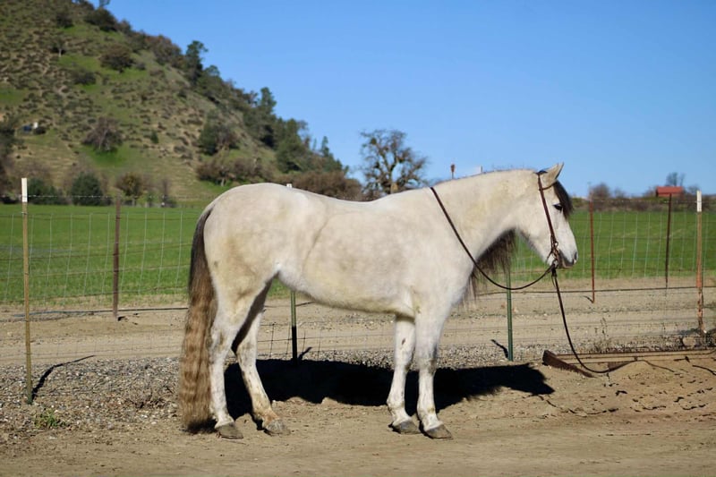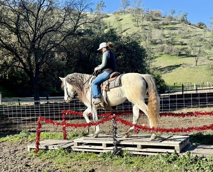 ONLINE AUCTION Place your bids at www.PlatinumEquineAuction.com Starting Bid $3500 Auction ends February 1st, 2026 Need a new saddle? Check out White Rock Saddles on our website or Facebook Crystal is a stunning 8-year-old Quarter Horse cross mare standing 14.2HH. With her thick, flowing mane and tail, she looks like she stepped straight out of a fairytale, and you’ll feel like royalty every time you ride her! Crystal is safe, gentle, and incredibly friendly. She is the ultimate trail horse and absolutely loves going out on rides. She has experience with busy highways, rushing rivers, bridges, bicycles, and everything in between. She travels out at a great, steady pace, keeps up beautifully, and never offers any fuss, refusal, spook, bolt, or rear. She confidently crosses water and is truly a “point-and-go” type of horse. In the arena, Crystal is just as well-mannered and easy to ride. She carries herself in a nice, collected frame, has smooth, rocking-chair gaits, knows both leads, and offers a fantastic stop with a soft backup. Her movement is elegant, fluid, and eye-catching, like something out of a movie. She navigates obstacles and trail courses with ease and is always willing to please. Crystal stands quietly tied, is excellent for the farrier, and is safe for anyone to handle or ride. She is not “marish” in behavior and gets along well with other horses. She loads and hauls perfectly and is an absolute pleasure to have around the barn. If you’re looking for a beautiful, reliable, and trustworthy mare who is a joy both on the ground and under saddle, Crystal is your girl. She is located in Bitterwater, CA. For more info or to come see her in person contact Cheyenne Rey at 831-537-8746. ONLINE AUCTION Place your bids at www.PlatinumEquineAuction.com Starting Bid $3500 Auction ends February 1st, 2026 Need a new saddle? Check out White Rock Saddles on our website or Facebook