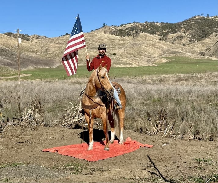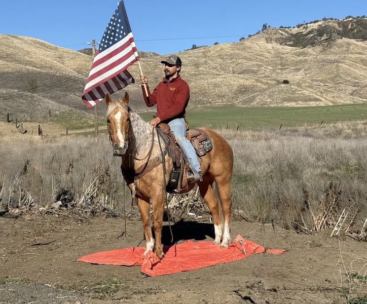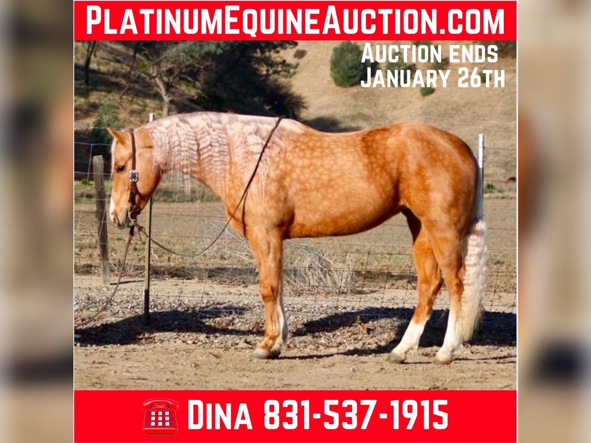 ONLINE AUCTION Place your bids at www.PlatinumEquineAuction.com Starting Bid $3500 Auction ends January 26th, 2025 Need a new saddle? Check out White Rock Saddles on our website or Facebook! I am excited to introduce you to a truly remarkable horse… Autumn is a stunning golden dapple palomino mare, 7 years old and standing at 15 hands tall. Her dapples look like Autumn leaves it’s just absolutely beautiful. Autumn possesses a friendly and kind disposition, making her an easy, safe, gentle, and kind-hearted companion. Autumn is nicely broke, showcasing a beautiful headset and exceptional skills. She picks up her leads in perfect circles and transitions seamlessly into a walk and a slow trot, complemented by a nice sliding stop and smooth backup. On the trail, she is a dream; confidently navigating steep trails, flowing creeks, downed trees, thick brush, and deep mud. Autumn enjoys scenic trail rides and has experience gathering cattle across various terrains, proving her surefootedness and safety for the entire family. She is also calm around busy roads, walking past cars, semis and cyclists with ease, highlighting her adaptability in different situations. Autumn excels at trail obstacles, willingly walking over bridges, crossing tires, and maneuvering through pool noodles and covered wagons. She is not bothered by tarps,flags or bouncy balls She embraces any task you present to her. A joy to be around, Autumn behaves like a gelding and gets along well with other horses in the pasture. She also appreciates a cozy stall on cold days. Loading into any trailer is no trouble for her, and she travels well, feeling confident in new environments. Autumn ties in crossties for grooming and tacking up and is easy to catch, often greeting you at the gate with her endearing personality. She has been a delight for all of us, and I am confident she will impress her new owners with her kind and inviting nature. If you have any questions or need further information, please feel free to reach out to Dina at Longhorn Ranch at 831-537-1915. We are located in Paicines, CA. I look forward to discussing this amazing horse with you, and if you require assistance with shipping, we have several reputable haulers available to transport her nationwide.
