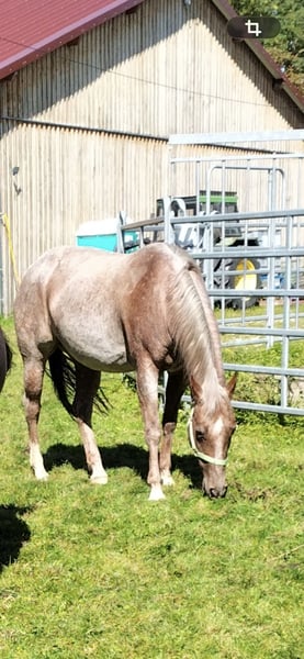 For sale: American Quarter Horse mare – Roan-Red, born 2018 We are offering an elegant American Quarter Horse mare, born in 2018. With her striking Roan-Red coat, she impresses with her noble appearance and versatile abilities. Her height is 15.4 hands, making her a compact yet strong partner. She is experienced in cutting and demonstrates excellent willingness to learn and perform in this discipline. The mare is friendly in handling, healthy, regularly vaccinated, and dewormed. She is suitable for ambitious recreational riders as well as sport riders who value versatility. Please feel free to contact me for more information or if you are interested. Viewing by appointment is possible.