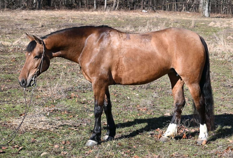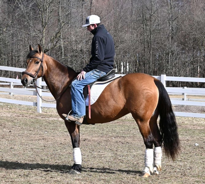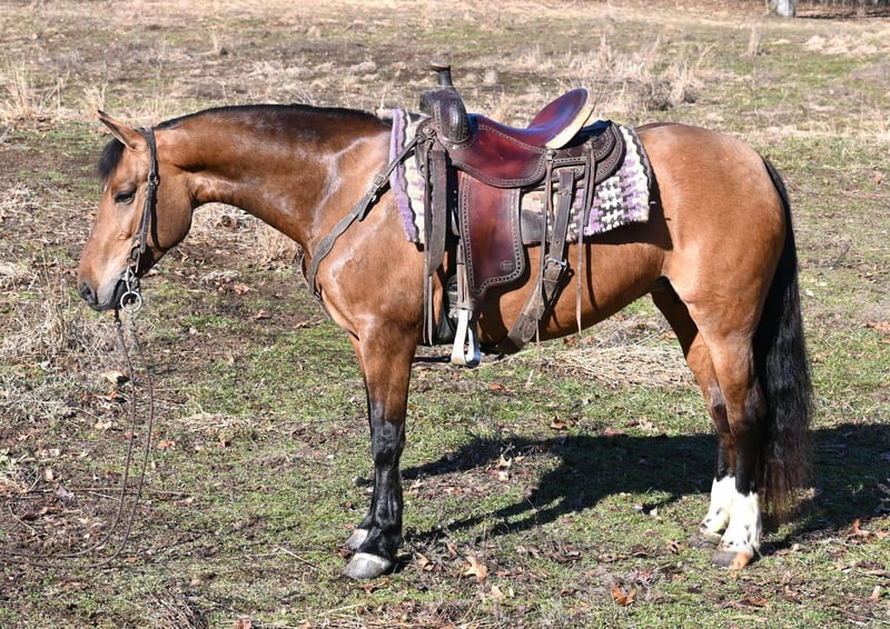 ONLINE AUCTION Place your bids at www.PlatinumEquineAuction.com Starting Bid $3500 Auction ends March 2nd, 2025 Need a new saddle? Check out White Rock Saddles on our website or Facebook! Beauty is a 13.2H, 8 year old, Buckskin/Dun Quarter Horse/Pony. She is stout built and is a handy size for everyone to ride. She is broke to ride english, western, bareback and drive single or double. She will go anywhere you ask her to go. She has been through town, down the highways, miles of trails, creeks, ditches, logs… she does it all! Beauty is easy to catch, saddle, bridle, shoe and bathe. She gets along great in the pasture and has no stall issues. She will walk, trot, canter, takes the correct leads and lopes nice circles. If you are a smaller adult or have kids who need a good horse, Beauty is the perfect choice! She is up to date on all and sells sound. For more info contact Silver Star Stables Norman 319-284-0001 with any questions. Located in Sturgis, MI. ONLINE AUCTION Place your bids at www.PlatinumEquineAuction.com Starting Bid $3500 Auction ends March 2nd, 2025 Need a new saddle? Check out White Rock Saddles on our website or Facebook!
