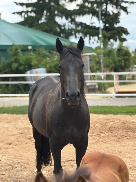 Solide berittene Stute. In allen Gangarten herrlich zu reiten. Reagiert auf Stimme und Blick sehr fein. Hat in 2025 ein wunderbares Fohlen zur Welt gebracht. Sehr schnell im Galopp aber gut zu entschleunigen. Braucht aber sicheren und erfahrenen Reiter der sie fordert da sie Training liebt und auch mal ein Freudenbuckler beim angaloppieren hinlegt. Sie ist irrsinnig schnell und muss bewegt werden da sie Training liebt und Muskeln nach dem absetzen aufbauen muss. Sie ist als Zuchtstute bei der AQAH gemeldet. Sie ist ruhig und sehr fein.