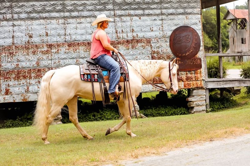 ONLINE AUCTION Place your bids at www.PlatinumEquineAuction.com Starting Bid $3500 Auction ends July 14th, 2024 Need a new saddle? Check out White Rock Saddles on our website or Facebook! Ginger is a 7 year old, 15 hand, cremello mare that has all the looks and lots of shape! She belonged to an older man her whole life has been trail ridden by him! She has been on several week long trail rides, been camping in many states and seen everything that you can think of! She will cross ditches, creeks, logs, deadfall and is very sure footed. She is super sweet with a cute head and gentle, calm eye! She is fun to ride and loves to swim the creeks and lakes! Ginger is a trail rider’s dream horse! She is super smooth and easy going! Anyone is sure to love and appreciate her! Located in Mt. Hope, AL. Call Chad Little 256-476-4347. ONLINE AUCTION Place your bids at www.PlatinumEquineAuction.com Starting Bid $3500 Auction ends July 14th, 2024 Need a new saddle? Check out White Rock Saddles on our website or Facebook!