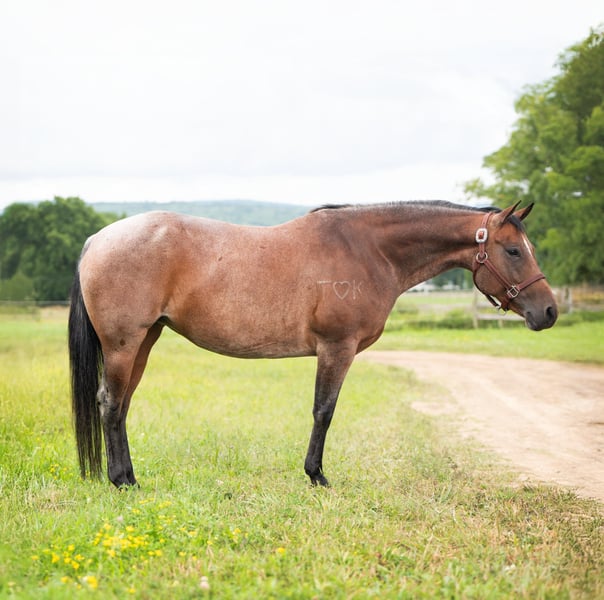 "AVAILABLE ON ONLINE HORSE AUCTION AT www DOT MagicHorseAuction DOT com BIDDING OPEN NOW thru TUESDAY | October 28TH! - BUY IT NOW AVAILABLE! *Final price will be determined on auction site* CONSIGNOR CONTACT INFO: Lexi Younger 585-698-0458 LOCATION: Geneseo NY """Mattie"" is a super sweet mare ready for her next home! She is an 8 year old AQHA Mare, standing 15.1hh and stout. She is a beautiful bay roan with unique markings throughout her body, a brand, and a coon tail. Mattie has been in a professional trainer's program for two years full time while being shown by an amateur rider. She has successfully shown in various ranch events, including ranch rail, ranch riding, ranch showmanship, ranch trail, ranch reining, halter, boxing, and box drive box cattle classes as well. She has earned multiple weekend Champion and Reserve Champion titles! At home, Mattie is the easiest horse in the barn in terms of care. She is the epitome of ""fat on air"" and can be stalled or turned out with other horses. She will run to the gate to greet you in the pasture! In the stall she is quiet and has zero bad habits. She is not on any medications. She was shod all the way around during show season, but has been barefoot for two months now and is still 100% sound. She is extremely personable and her personality does not change whatsoever when she is in heat. She loves to be groomed and will stand quietly tied or on the cross ties. She also does all of the other basics such as bathing, clipping, great for the vet and farrier, and will load right onto a horse trailer. She is an easy push ride under saddle and about as broke as they come! She has all the bells and whistles and could continue showing in the ranch or cattle classes. She's WTL and has all of the extended gaits for ranch, will open gates, drag a log, spin, sidepass, and has the start of a lead change. She has some experience in competition sorting and we have also pasture sorted cattle with her as well! She has some trail experience in a group setting. She is forward on the trail but quiet and will go all day! She would excel in a show home, family riding setting, or produce some nice foals!"