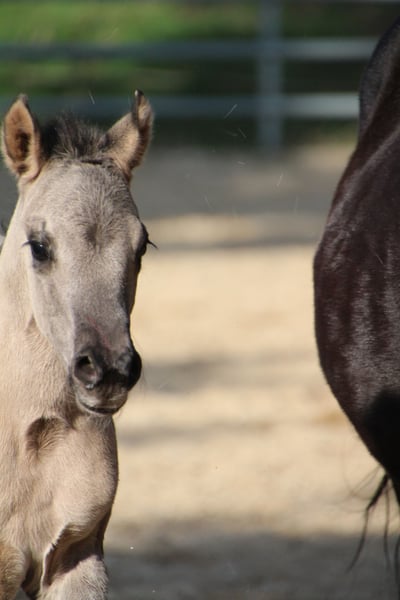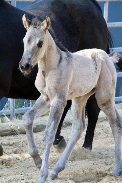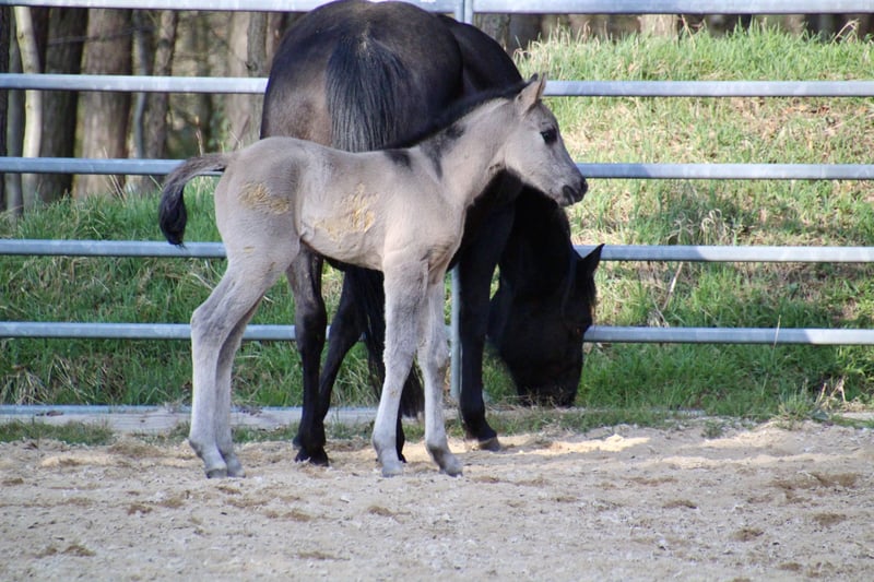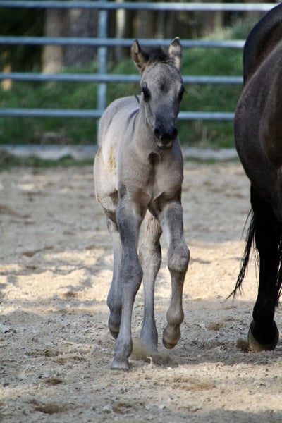 Am 20.03.2026 wurde diese wirklich typvolle und große Quarter Horse Mädchen geboren ❤️ - Quarter Horse Stutfohlen - geboren 20.03.2026 - grullo ( homozygot ) - 6 Panel n/n Ratenzahlung möglich! „ER Oakie‘s Silver Gipsy“ überraschte uns alle mit ihrer beeindruckenden Größe und lässt erahnen was ihre Mama geleistet hat! Bereits bei ihrer Geburt,musst sie ein Stockmaß von über einem Meter und auch der Rest ihres Fundaments ist wahrlich beeindruckend…große kräftige Gelenke, starke Beine,ein wunderschönes Köpfchen und eine edel wirkende Fellfarbe! Auch ihr Interieur überzeugt…mutig,aufgeschlossen und gibt schon jetzt gerne Vollgas! Hier erwirbt man den Ursprungstyp….kurz,kräftig,schnell,wendig und ein geschätztes Endmaß von ca 150cm ☺️ „Gipsy‘s“ Papa, „Oakie Silver Dust, stammt von der „Shining Grullo Ranch“ aus Texas und hat uns vom ersten Moment an überzeugt…er bringt ein tolles Allround Pedigree mit und lässt seiner Tochter somit alle Sparten offen! Ihre Mama „BD Shari Shining Bar“ ist seit einigen Jahren fester Bestandteil unserer Zucht und sie überzeugt täglich mit ihrem unkomplizierten und verschmusten Wesen…ihre tollen Eigenschaften gibt sie stabil an ihre Fohlen weiter! Sie weißt ein tolles Pedigree vor und vereint viele Cutting und Reining Legenden auf ihrem Papier wie zum Beispiel " Fritz Power ", " Doc Bar " , " King ", " Doc Olena " usw.. In ihrem Pedigree finden sich einige Pferde der Hall of Fame was sie für uns zu einem echten Juwel macht! www.east-ranch-poa.de die letzten Bilder zeigen den Papa