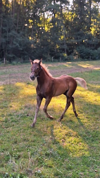 Zippo – a Promising Young Stallion with Excellent Pedigree Zippo is an alert and eager-to-learn young stallion, born on May 11, 2025. He impresses with his open-minded nature and already shows great interest in new tasks. His appearance is striking—completely without markings, dark chestnut with a light tail and mane. The foal’s ABC is no problem for him, and he proves to be highly talented. He willingly gives his hooves, is familiar with the halter, leads on a lead rope, and is calmly sprayed and rinsed. He already knows trailer loading and goes out in the field as a ground partner. Regularly dewormed and well-behaved at the blacksmith. His harmonious conformation makes him a real eye-catcher. The equine passport, certificate, and 5-panel test are applied for. Additionally, Zippo will be enrolled in the EWU young horse program. He was awarded a 1b premium at the foal show (missing only 0.25% for a 1a). Zippo’s sire, Tinseltownsmartest, is an outstanding Quarter Horse stallion born in 2013. He is a Palomino with 5-panel N/N and boasts impressive achievements: - Lifetime Earnings (LTE): $4,660 - NRHA Breeders Derby 2020 Level 1 Reserve Champion - Go-Round Leader Levels 1 & 2 - Multiple NRHA Limited & Intermediate Open Champion - Finalist at several NRHA Breeders Derbies and NRHA European Derbies - Winner of the NRHA Bronze Trophy (national/USA) Open In addition to NRHA success, Tinseltownsmartest has been highly successful in the all-round disciplines of EWU, including Pleasure, Trail, Horsemanship, and Ranch classes. His pedigree is equally impressive: he descends from Hollywoodstinseltown, which traces back to the legendary Hollywood Dun It and Smart Chic Olena. Furthermore, Hollywoodstinseltown is the sire of the 2025 Run for the Million winner. Zippo’s dam, Zippos Sugarina, is a talented and well-built Quarter Horse mare, distinguished not only by her excellent pedigree but also by her own quality. She combines elegance, performance ability, and a balanced temperament, which she passes on to her offspring. Her sire, Zippo Pine Sugar, is a direct son of the legendary Zippo Pine Bar, one of the most influential stallions in Quarter Horse history. Zippo Pine Sugar has made a name for himself both in sport and as a breeding stallion. His sporting achievements include: 1st place in Western Riding at the Texas Classic 1992, 7th place in Western Riding (3-year-olds) at the World Show in Oklahoma 1991, and 10th place in Western Riding at the World Show 1993. In 2000, Marco Stors presented him in Aachen in the classes Halter Aged Stallion and Western Riding, earning a bronze medal in Trail. Zippo will be placed only in the best hands, with an excellent home.
