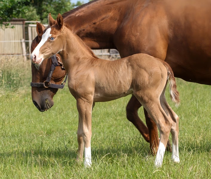 Cole - seine schöne Farbe, das blaue Auge und sein bildhübsches Erscheinungsbild machen ihn zu einem echten Hingucker. Er ist 2025 geboren und wird ein geschätztes Endmaß von 150 cm bekommen. Cole ist ein kompakter, kräftiger und stark bemuskelter Quarter Horse Hengst. Sein gutes Gebäude, seine Gesundheit und sein freundlicher, menschenbezogener Charakter sprechen für ihn. Cole ist gut sozialisiert, kennt Tierarzt und Hufschmied, wächst in einer kleinen Stuten- und Fohlengruppe auf. Seine Gelassenheit, Lernwilligkeit und Offenheit machen ihn leicht im Handling und sehr angenehm im Umgang. Mit erstklassiger Reining-Abstammung ist er bestens für den Sport, Turnier oder auch die Freizeit geeignet. Cole zeigt beeindruckende Bewegungen und hat das Potenzial, ein richtig athletisches Pferd zu werden. Da er ein Hengstanwärter ist, wird er gerne in entsprechende Hände abgegeben, aber auch Freizeitreiter mit gehobenen Ansprüchen können mit ihm glücklich werden. Die klinische AKU wird im Rahmen des Verkaufs von der Züchterin in Auftrag gegeben.