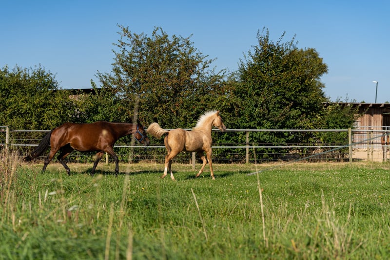 Smart Dressed Spook - wundervoller Quarter Horse Jährlingshengst, 4.2024 geboren mit einem geschätzten Endmaß von 150 cm, mit erstklassiger Abstammung und toller Farbe. Clark ist ein super Beweger mit einem freundlichen und sehr wachen Mind. Er besticht durch seine offene und interessierte Art. Hat das Fohlen ABC mit Hufe geben, Pflege, Halfterführtigkeit und höfliches Miteinander gelernt. Der Jährling ist alle 6-8 Wochen beim Schmied mit kleinen Korrekturen vorgestellt worden. Wurde regelmäßig entwurmt und dem Tierarzt vorgestellt. Die Fohlen sowie die Mutterstuten werden mit bestem Heu sowie sehr hochwertigem Zuchtmineral/- futter versorgt und stehen 24/7 draußen auf Weide, Trail und befestigten Paddocks. Aufgewachsen ist er die ersten 6 Monate im Herdenverband mit anderen Stuten und Hengstfohlen und seit Ende des Monats mit seinem besten Buddy zur Aufzucht umgezogen. Clark ist ein Sohn vom erfolgreich geshowten Sharp Dressed Shiner, Topvererber mit Offspring earnings $ 70.000,00 und ein direkter Nachkomme von Shining Spark 10 Mio. EUR Sire und Smartly Dressed, eine Halbschwester von Taris Designer Genes nd A Vintage Smoke mit Offsprings earnings $ 300.000,00. Clarks Mutter ist eine Tochter von Best Spook aus Smart Spook 8 Mio. $ Sire und Best Stop einer Custom Chrome Tochter. Bei ihrem ersten Turnier mit 3 Monaten Training nach der Fohlenpause ist sie bei der EWU DS Aachen 2025 direkt platziert 1. Platz LK 1 jun Ranch Riding 75.0, 6. LK 1 jun Western Ranch Rail, 3./12. Q LK 2/1 jun Ranch Riding 72.0 / 71.0, 7. Q LK 2/1 jun Western Ranch Rail. Dam ARC Calbar Gal mit NRHA earnings ist eine direkte Snapper Cal Bar, NCHA LTE $ 250.000,00 und Enkelin von World Champion Be Aech Enterprise mit offspring earnings $ 1.345.000,00. Smart Dressed Spook ist für EWU JUPF, NRHA Germany und NRHA Euro einbezahlt. Wird gerne in ein Showhome abgegeben.