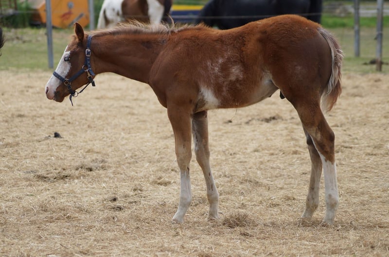 AM Timeless - ein außergewöhnlich typvoller Quarter Horse / Paint Horse Hengst, geboren am 28. Januar 2025. Mit seiner wunderschönen sorrel/sorrel overo Farbe und seinem harmonischen, korrekt gebauten Körper ist er ein echter Eyecatcher. Braxton wird voraussichtlich ein Endmaß von etwa 157-160 cm erreichen und bringt eine hervorragende Bemuskelung mit, sodass er später auch größere Reiter gut abdecken wird. Der junge Hengst ist doppelt registriert, sowohl bei der AQHA als auch bei der APHA, und die Papiere liegen bereits vor. Er ist 5-Panel n/n getestet, selbstverständlich gesund, regelmäßig entwurmt, altersgerecht geimpft und kennt den Tierarzt sowie den Hufschmied. AM Timeless wächst artgerecht im Herdenverband auf und zeigt sich dabei sehr sozial und ausgeglichen. Charakterlich ist er ein echtes Goldstück - menschenbezogen, verschmust und cool im Umgang. Er kennt das Fohlen-ABC, ist halfterführig, gibt brav die Hufe und lässt sich problemlos putzen. Mit seinem angenehmen Temperament, seiner schnellen Auffassungsgabe und seiner Lernfreude bringt er die besten Voraussetzungen für eine erfolgreiche Ausbildung mit. Auch unter sportlichen Gesichtspunkten lässt AM Timeless keine Wünsche offen. Seine überragenden Grundgangarten und seine geniale Pleasure-/Allround-Abstammung machen ihn zu einem vielversprechenden Nachwuchspferd für den Sport- und Turnierbereich, ebenso wie zu einem idealen Partner für den ambitionierten Freizeitreiter. Braxton ist ein Enkel von Only Krymsun und Diesel Only. Der Hengst ist zudem DQHA- und PHCG-Futurity startberechtigt. Ob als zukünftiges Showpferd oder zuverlässiger Freizeitpartner - AM Timeless vereint Qualität, Ausstrahlung und Charakter in einem beeindruckenden Gesamtpaket und ist damit ein echtes Versprechen für die Zukunft.