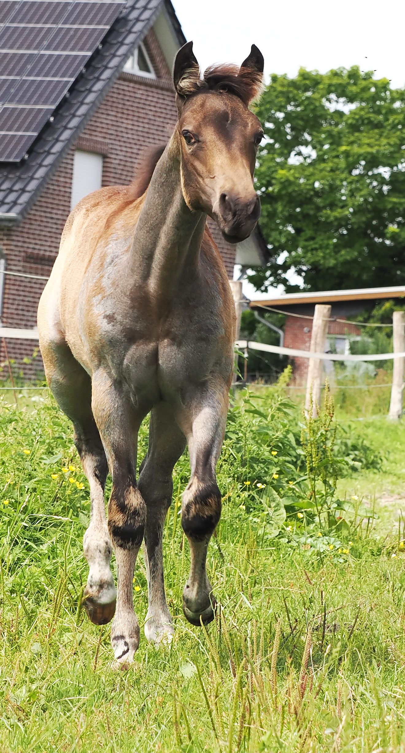 Hengstfohlen 05.2025 von MJM Saltys Blue Ezra, aus der Champagne Pearl in Bukskin Roan . Mit athletischem Körperbau und sehr lieben Wesen ausgestattet, ist auf der Suche nach einem 5 Sterne Zuhause, wo man einen so tollen Bub zu schätzen weiß. Er wird später sicher ein zuverlässiger Partner für seinen Reiter werden, der viel Spaß macht.